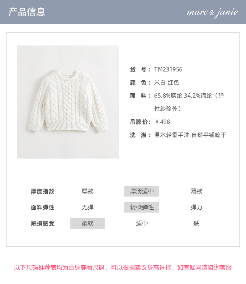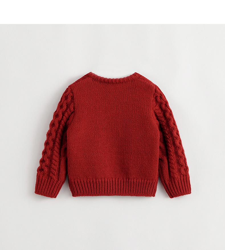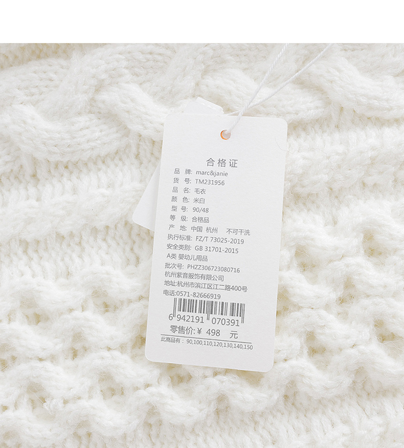 马克珍妮秋冬装新款 女童柔蓝绒圆领休闲绞花毛衣 231956