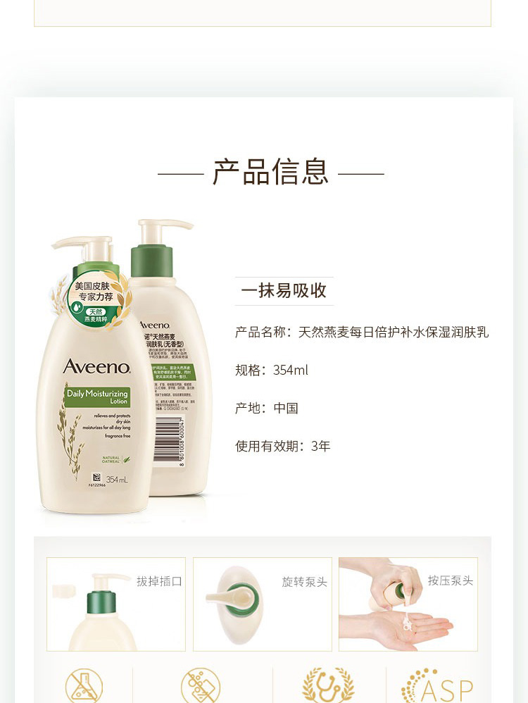 【中文标】美国 艾惟诺天然燕麦每日倍护润肤乳354ml(无香型)