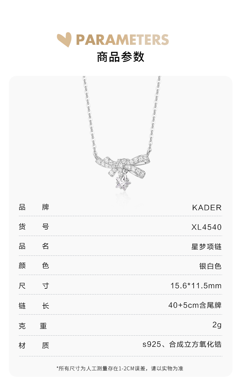 卡蒂罗KADER 星梦流星蝴蝶结项链 梦幻浪漫童话风设计锁骨链 秋冬温柔百搭配饰闪耀仙气 S925银 项链 女款 过节 礼盒款 闺蜜