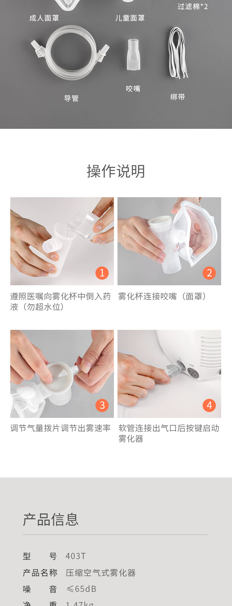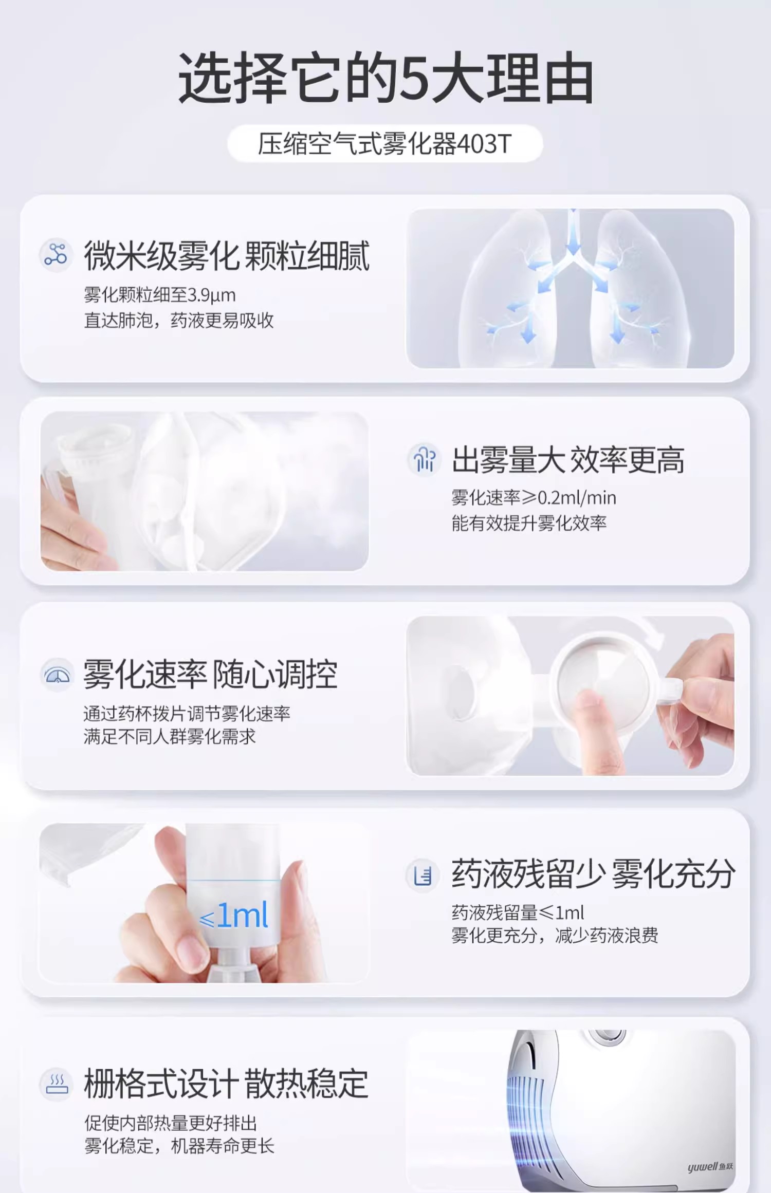 鱼跃空气压缩雾化器 403T 儿童医用家用成人 配面罩