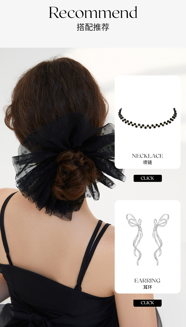 ZEGL黑色网纱发圈女高级感ins气质韩系发饰小众设计感夏季头饰品