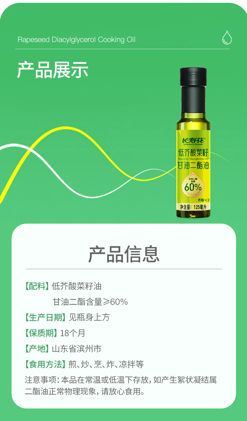 长寿花甘油二酯食用油60% 125ml 轻便装