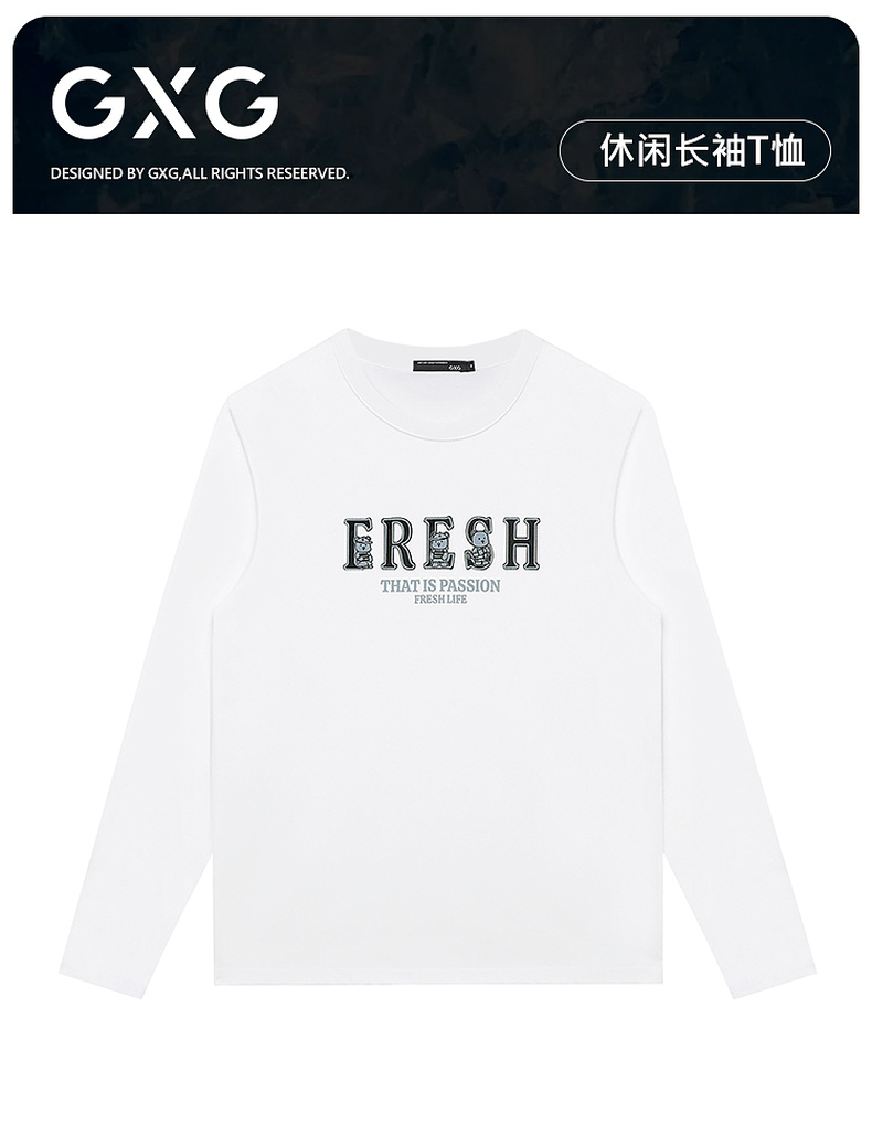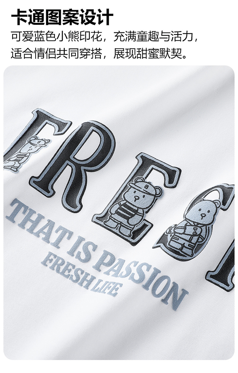 GXG男装【100%棉】秋季卡通动漫蓝色小熊情侣款圆领长袖T恤K&C