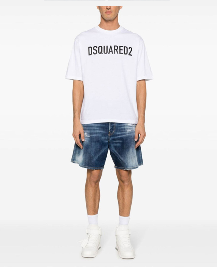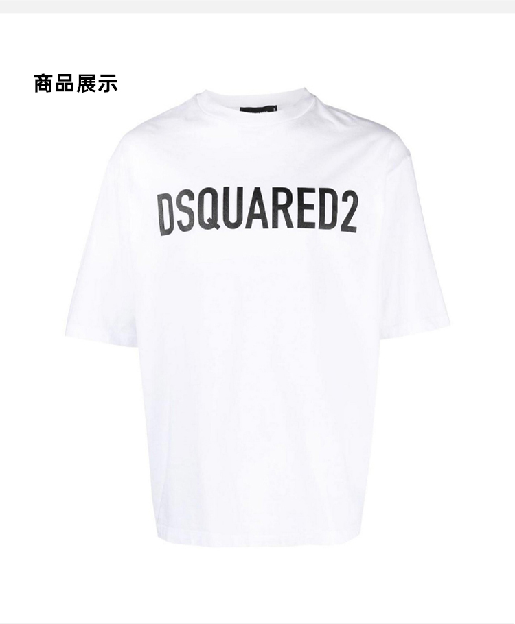 DSQUARED2 男士字母徽标印花棉质圆领短袖T恤 白色 S74GD1197 D20004 100