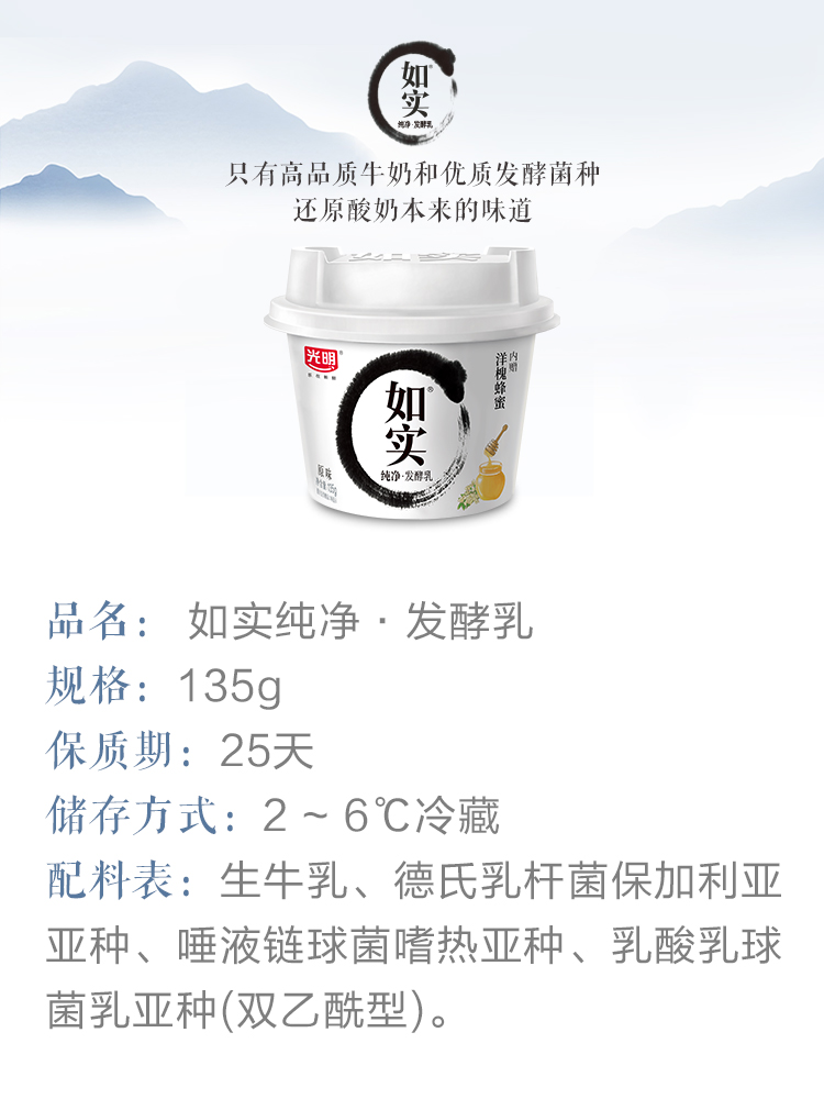 光明如实纯净发酵乳(蜂蜜)135g*12