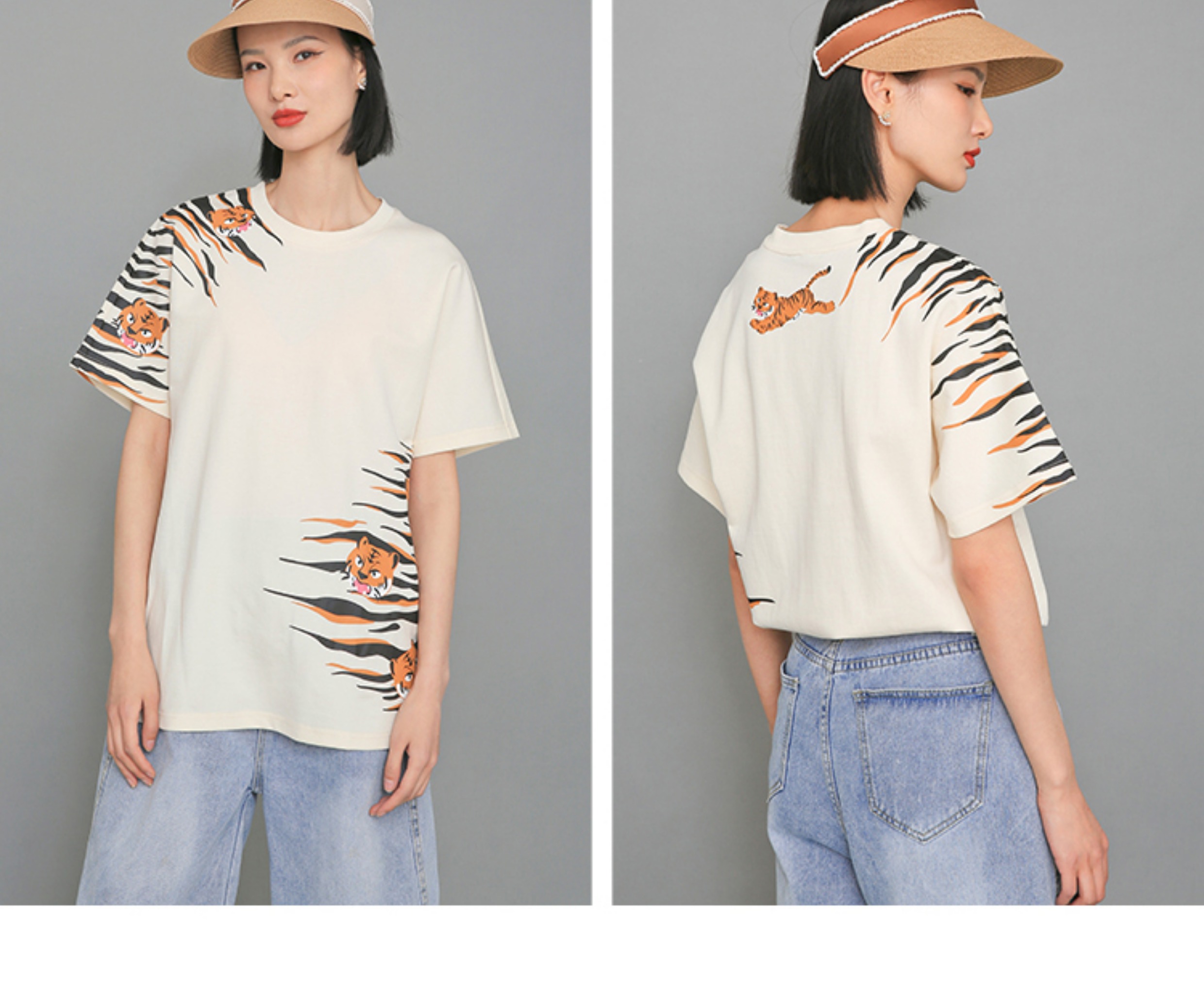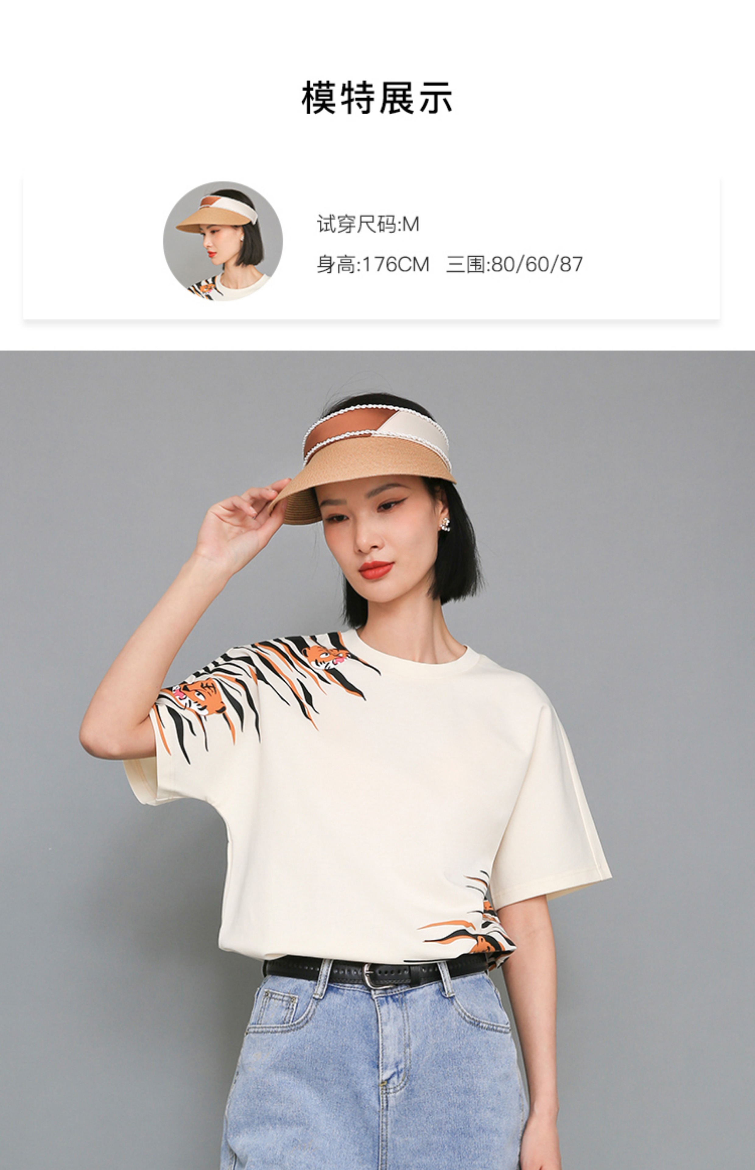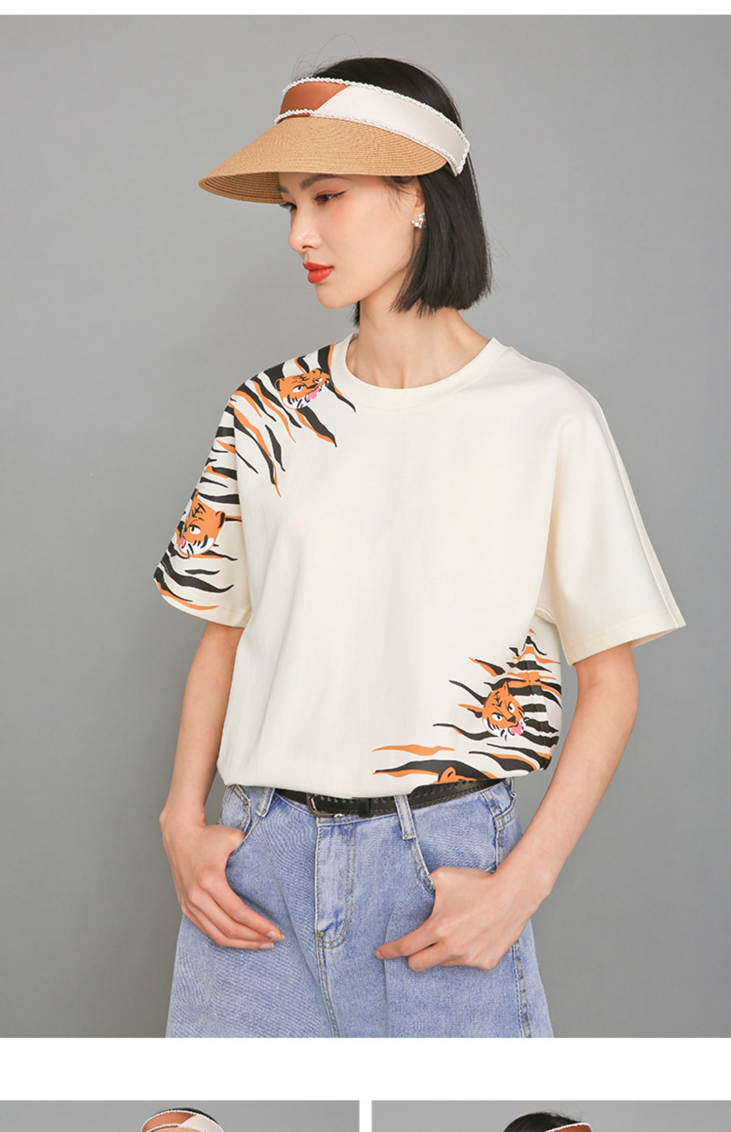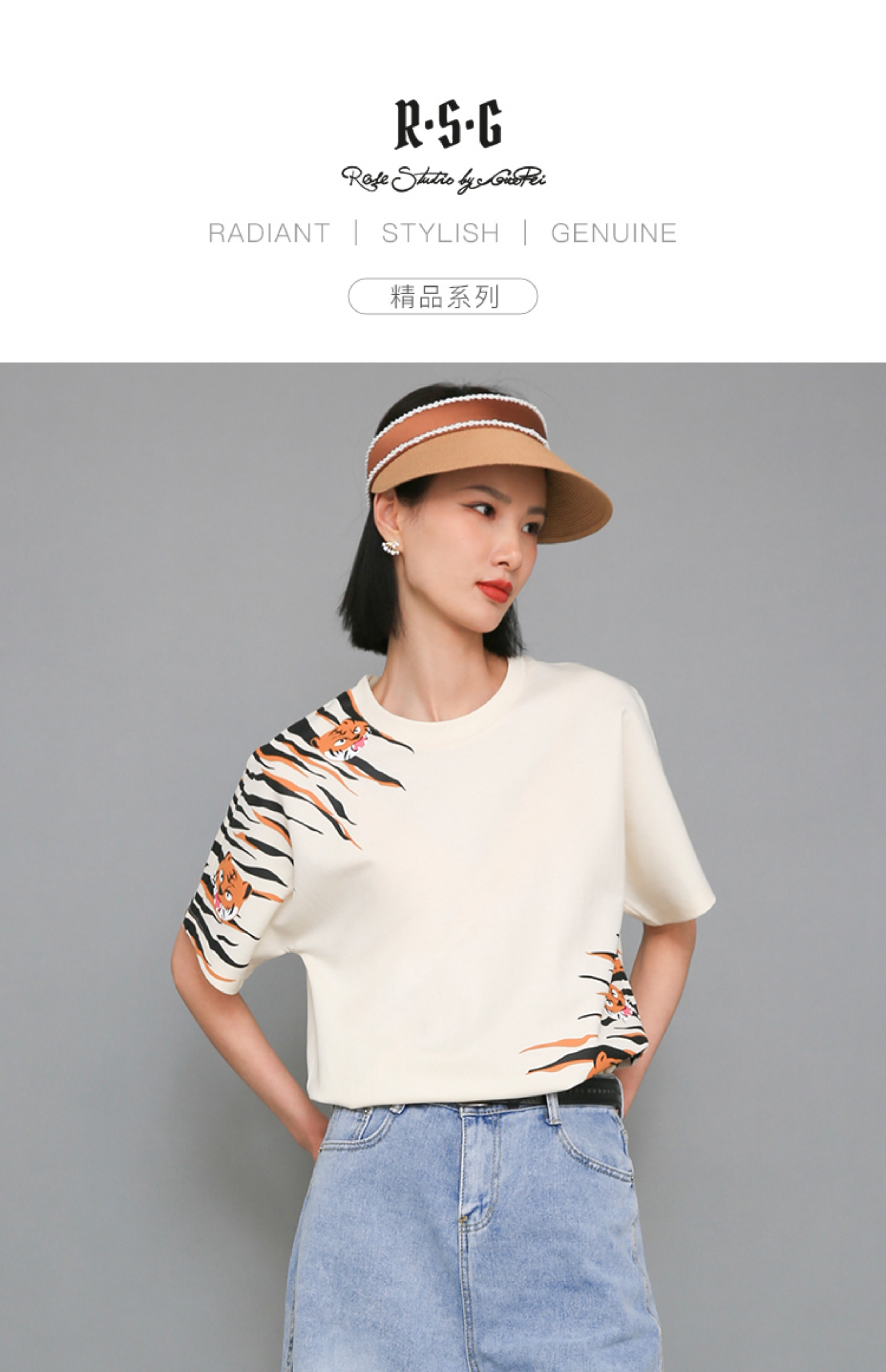 RSG郭培成衣品牌原创设计米色小老虎纹印花上衣T恤女装