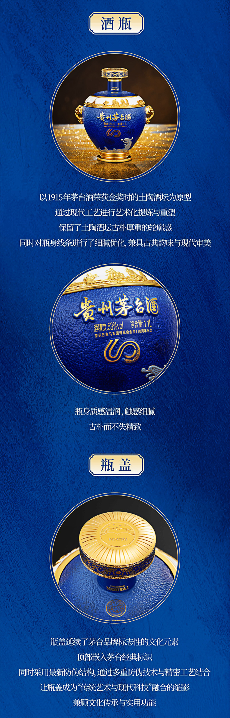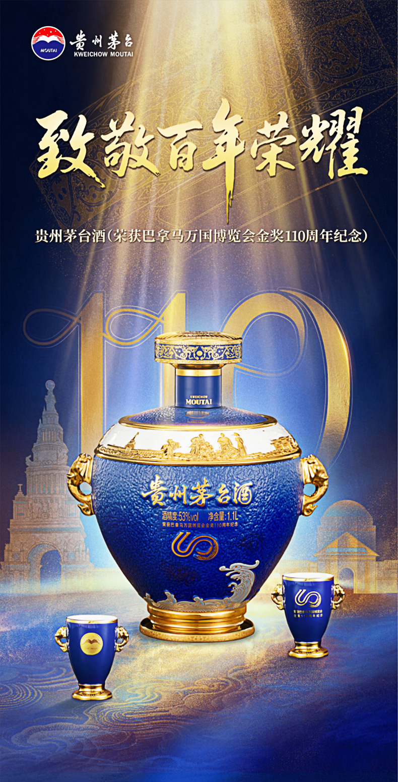 茅台巴拿马110周年纪念 巴拿马系列纪念酒 53度稀缺收藏摆柜1.1L