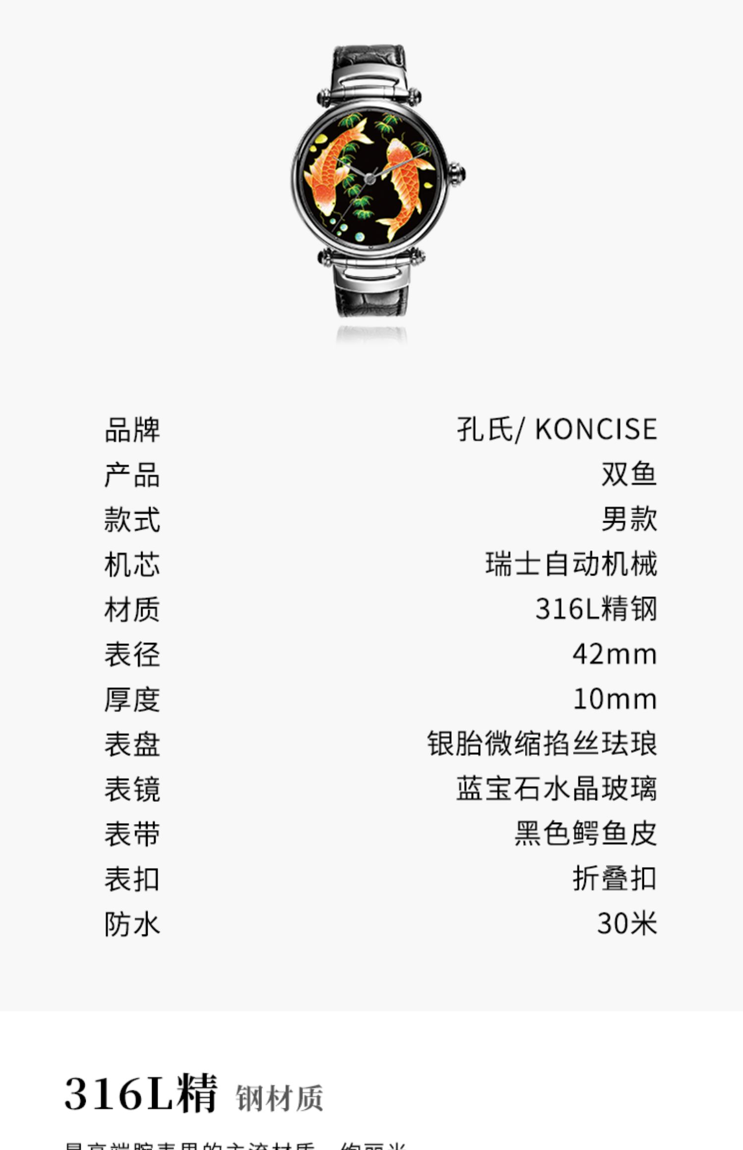KONCISE孔氏珐琅 双鱼 掐丝珐琅腕表
