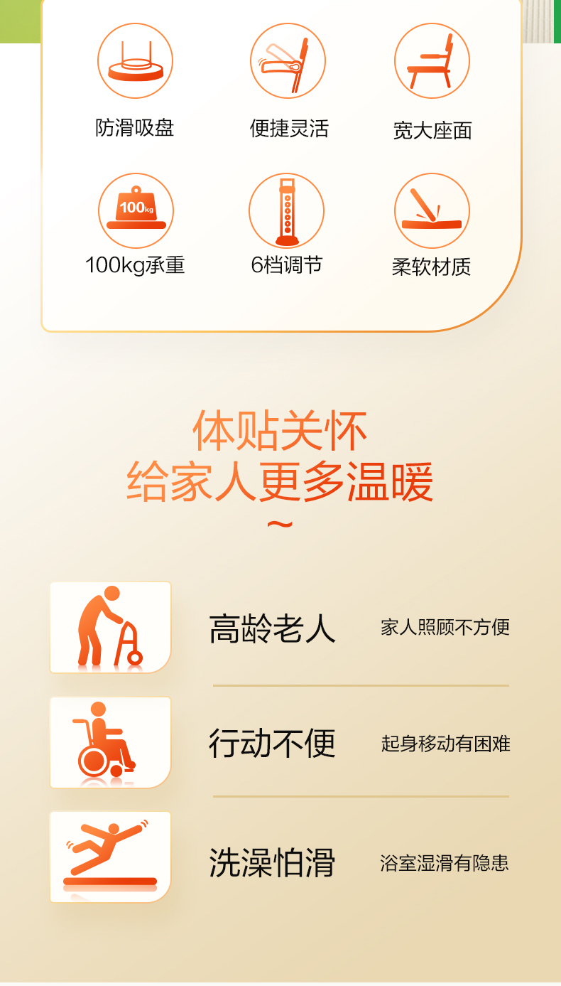 松下老人高度可调节洗澡椅沐浴椅孕妇专用防滑冲凉椅PN-L41321D