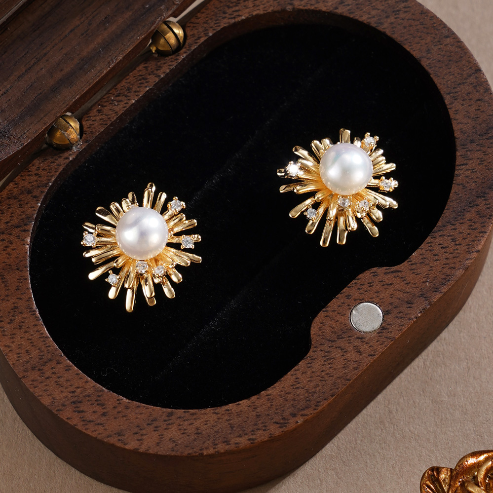 子佩集【烟火星辰】银S925珍珠惜王妃耳钉【E4975】镀金烟花2602