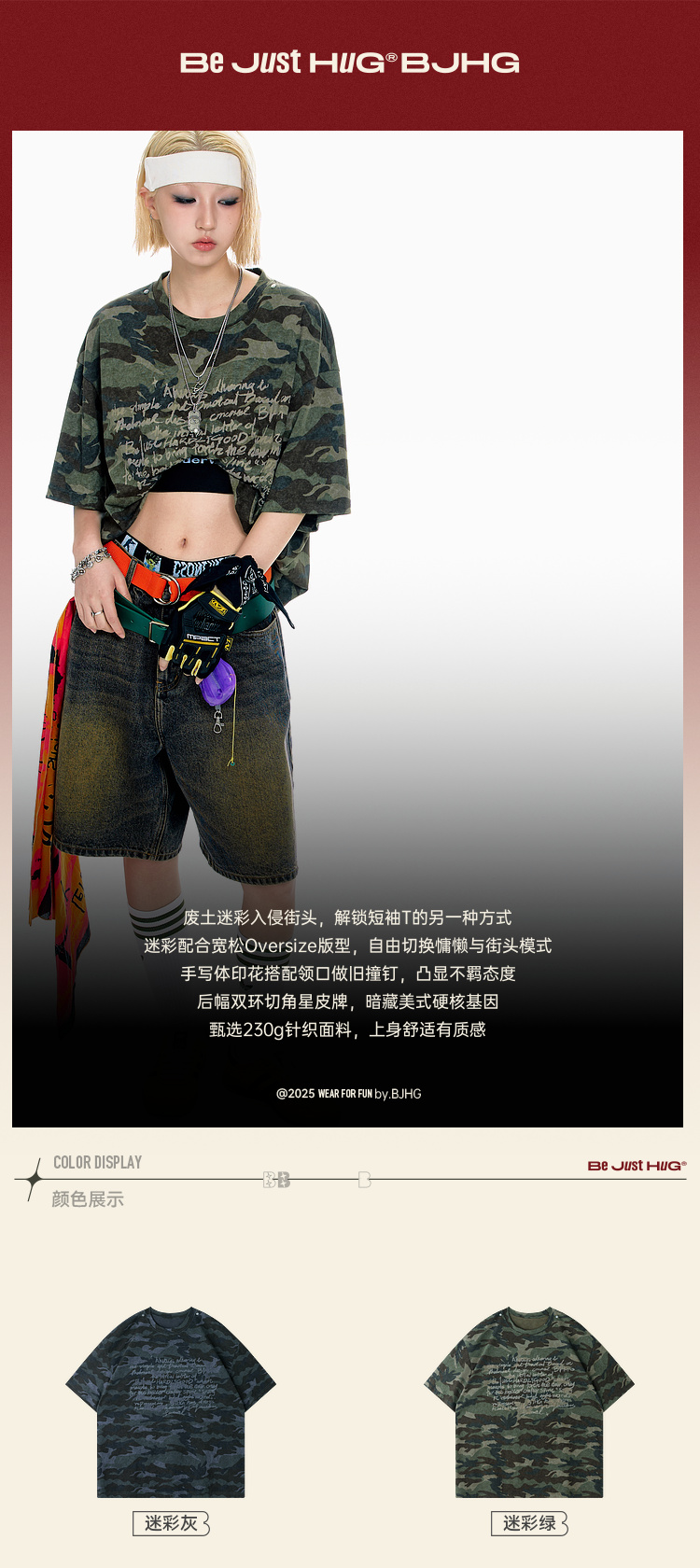 BJHG不计后果 美式迷彩短袖t恤夏季潮牌高级小众不撞款半袖上衣
