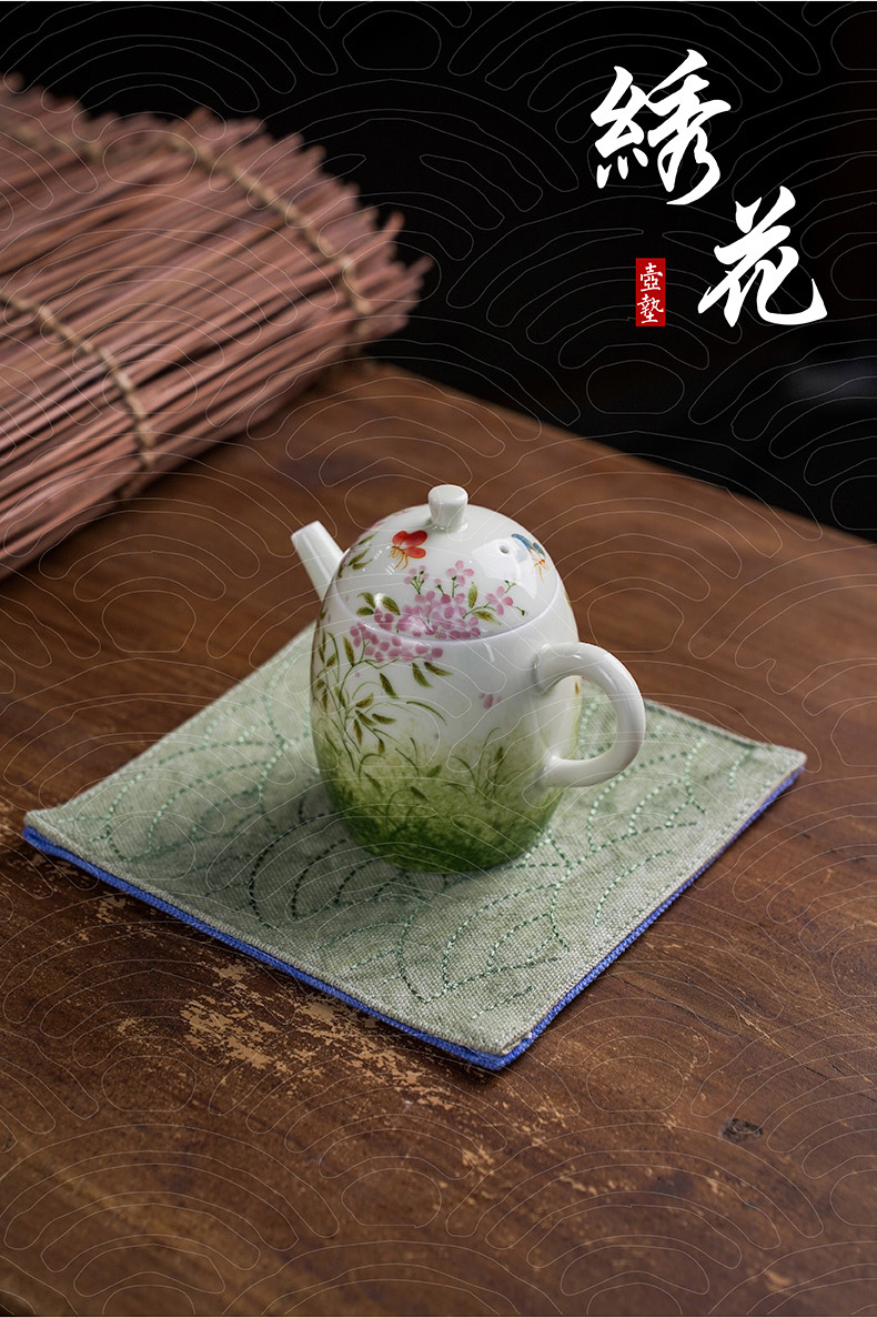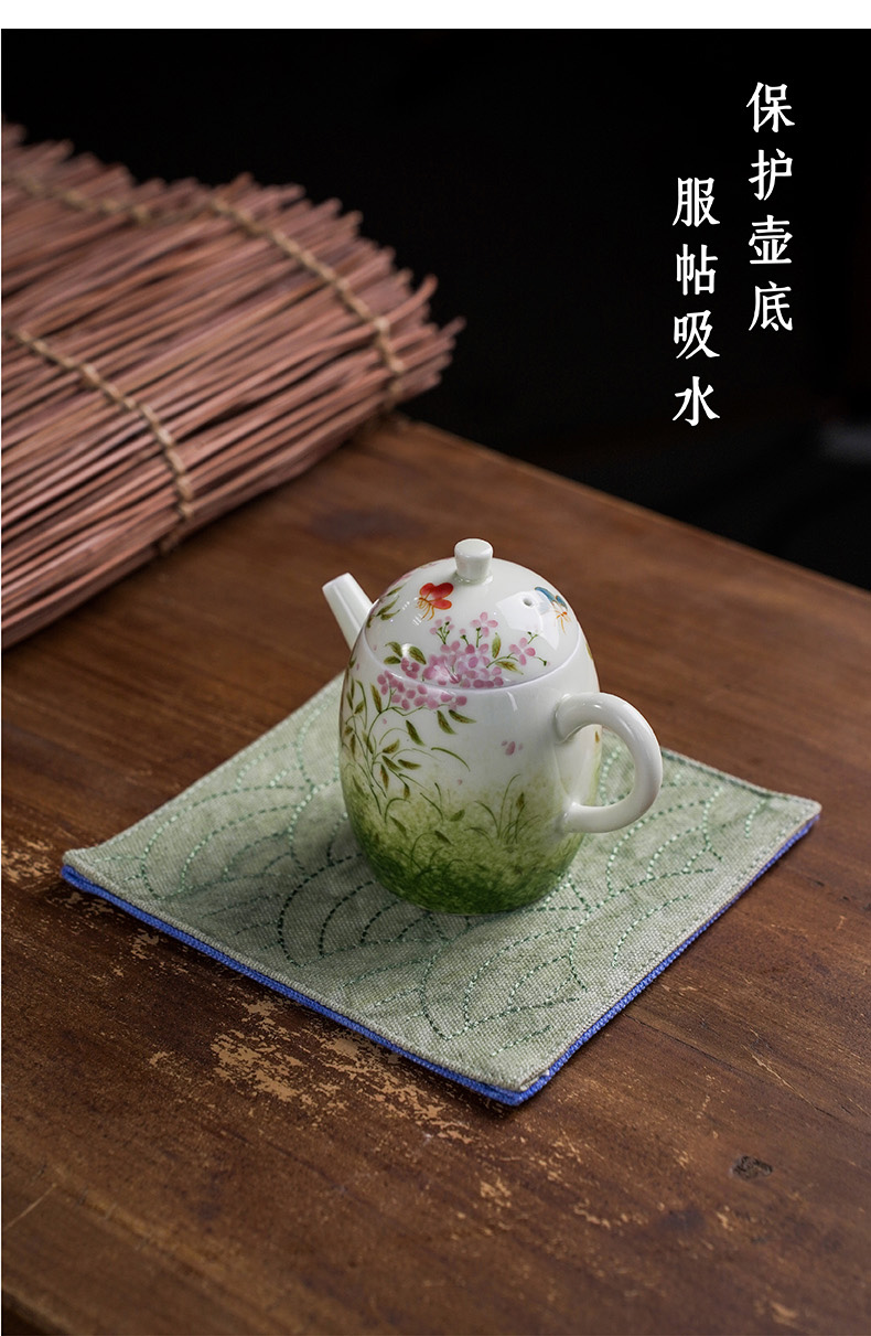 拾舍 手工棉麻绣花壶垫 吸水隔热防滑壶垫