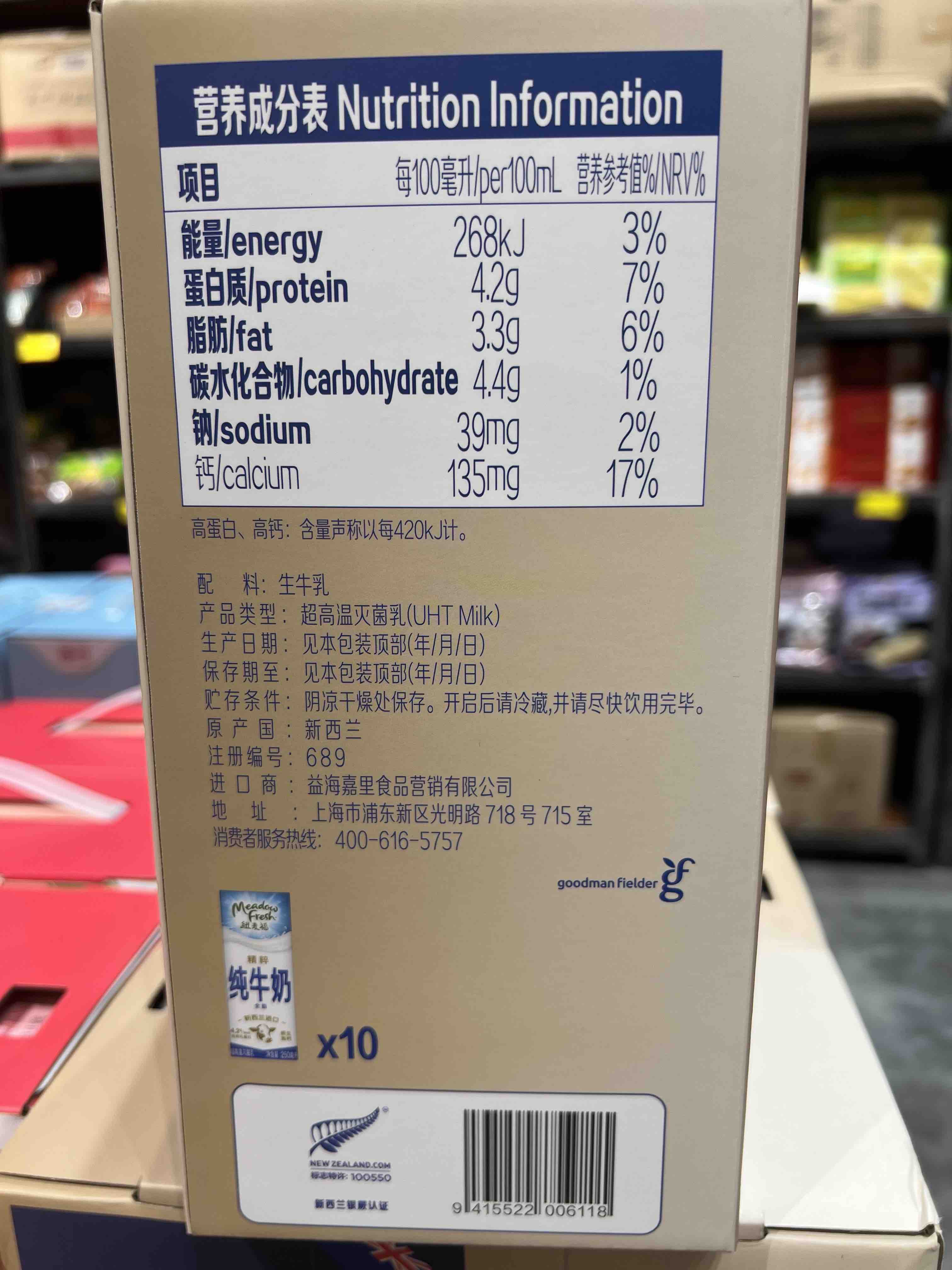 纽麦福精粹全脂高钙牛奶礼盒装250mlx10