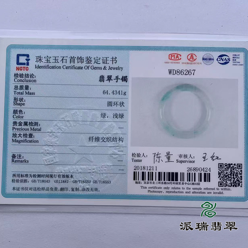 派瑞翡翠 翡翠手镯 糯种 浅绿