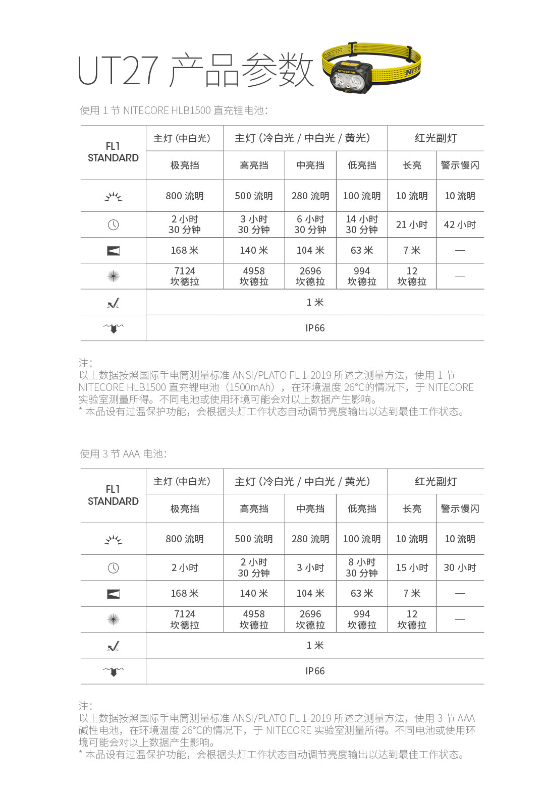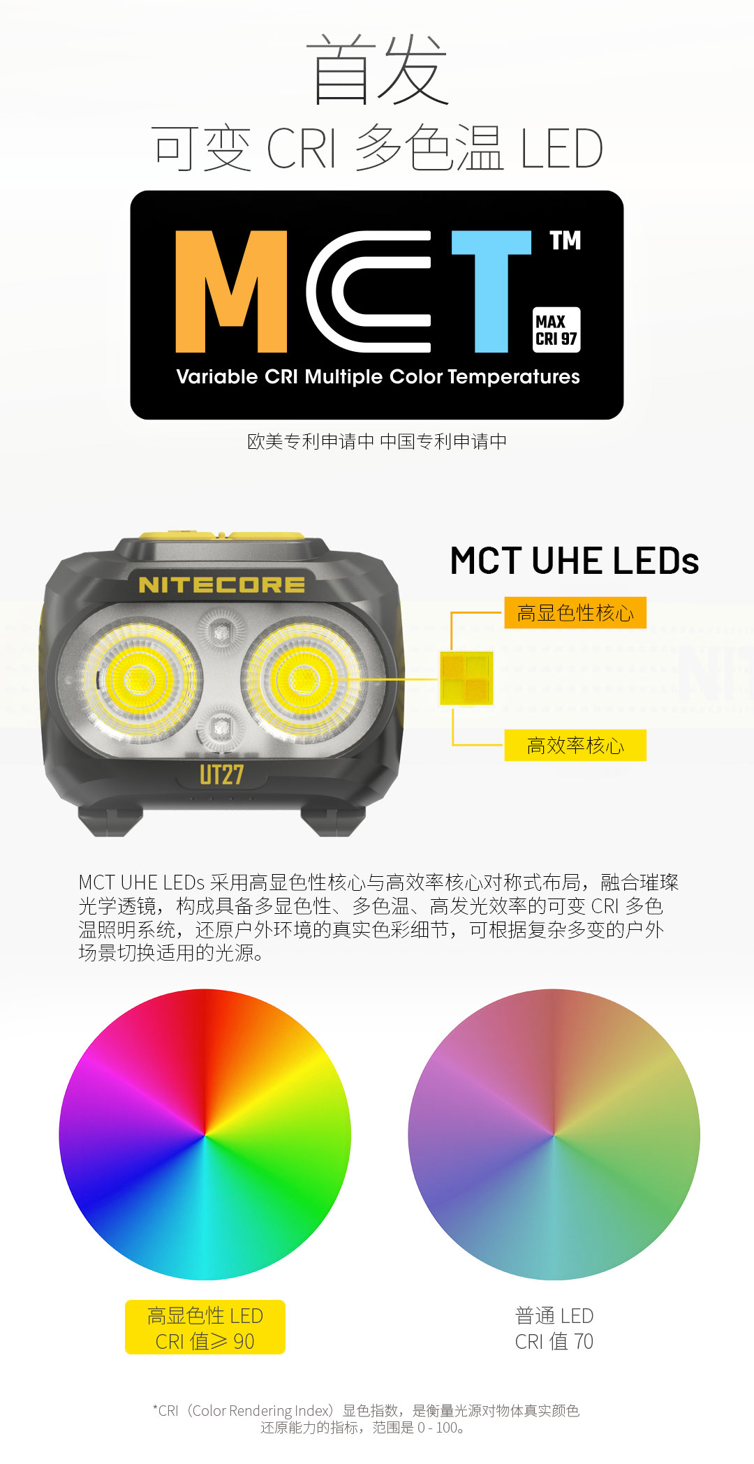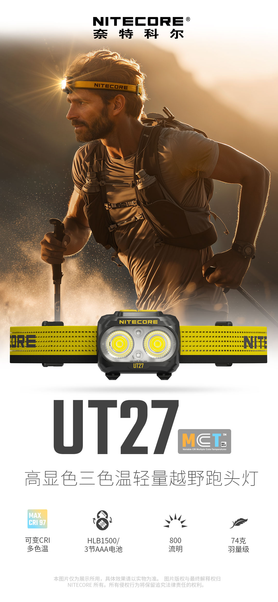 【下单立减100元,258起,建议专业版多一个备用电池】25新款 NITECORE奈特科尔UT27 2025 MCT三色温UT27 PRO户外全能轻量头灯