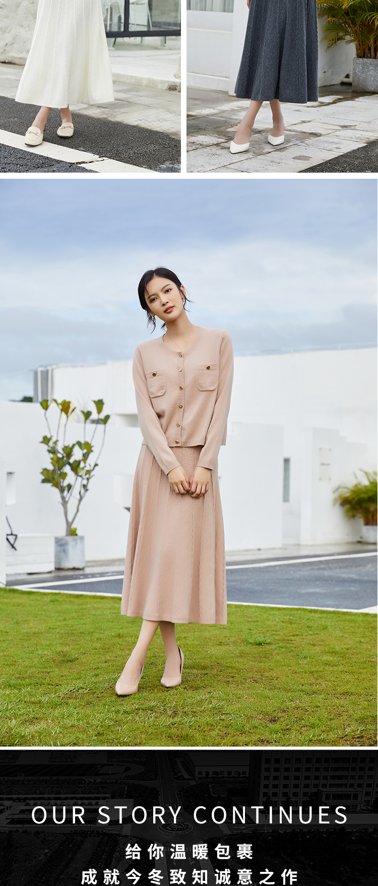 东黎 • 山羊绒女士秋冬复古波浪纹伞裙 3190
