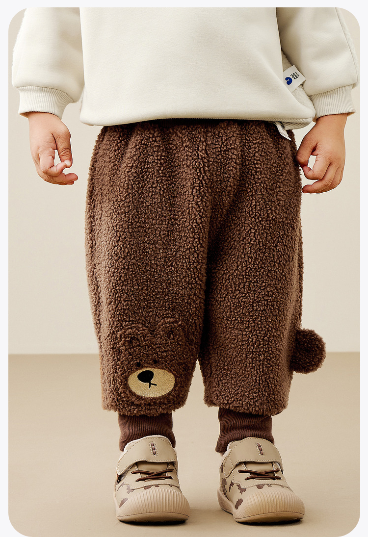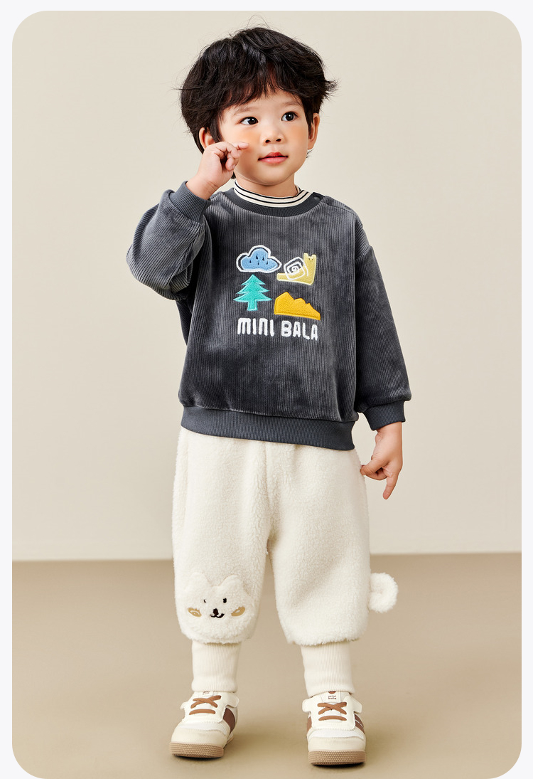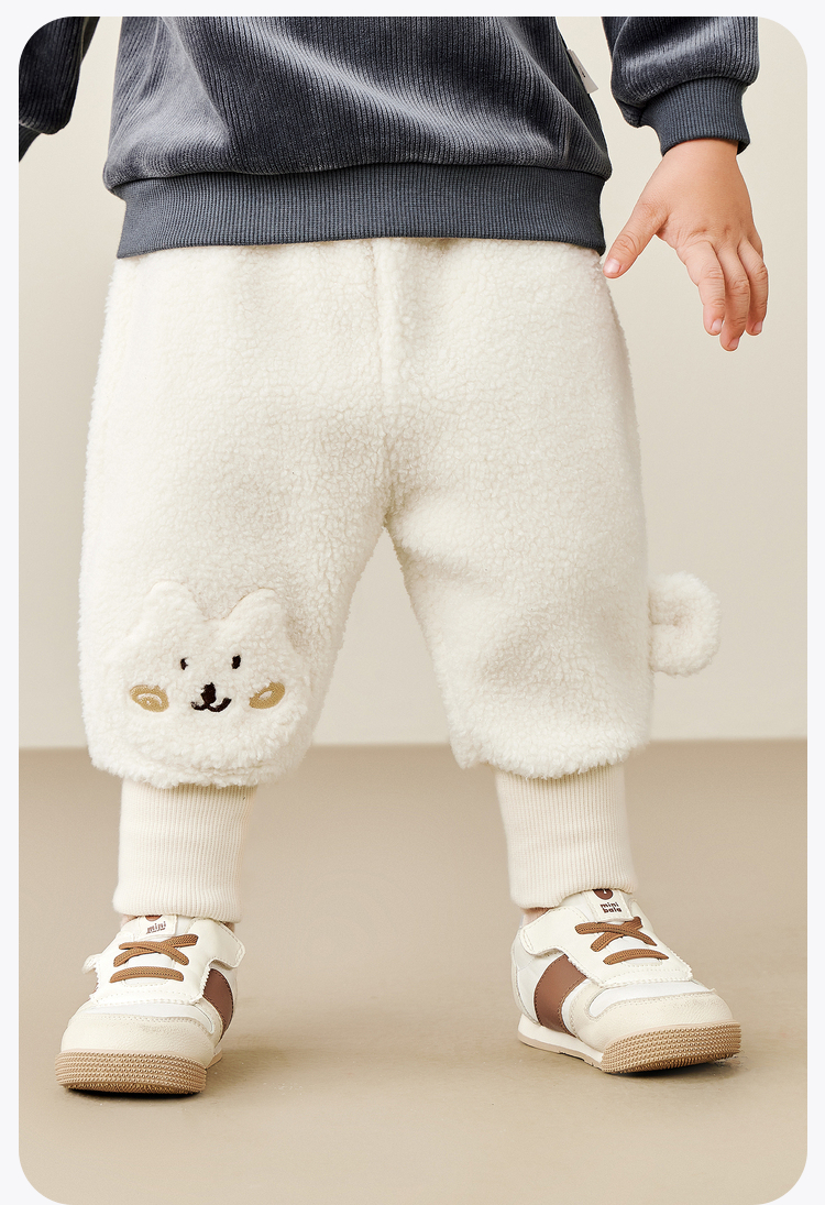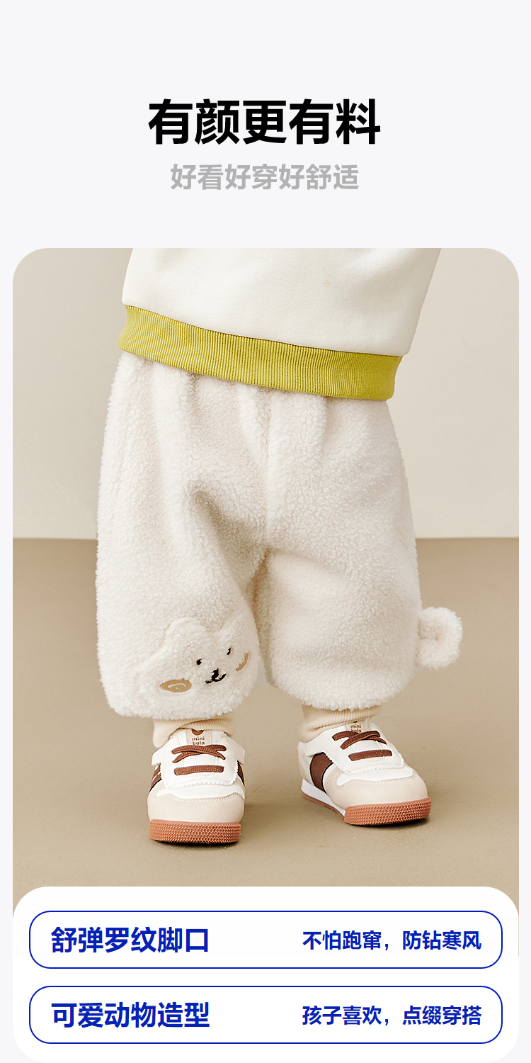 迷你巴拉男女童秋冬新品可爱宝宝加绒毛绒长裤子