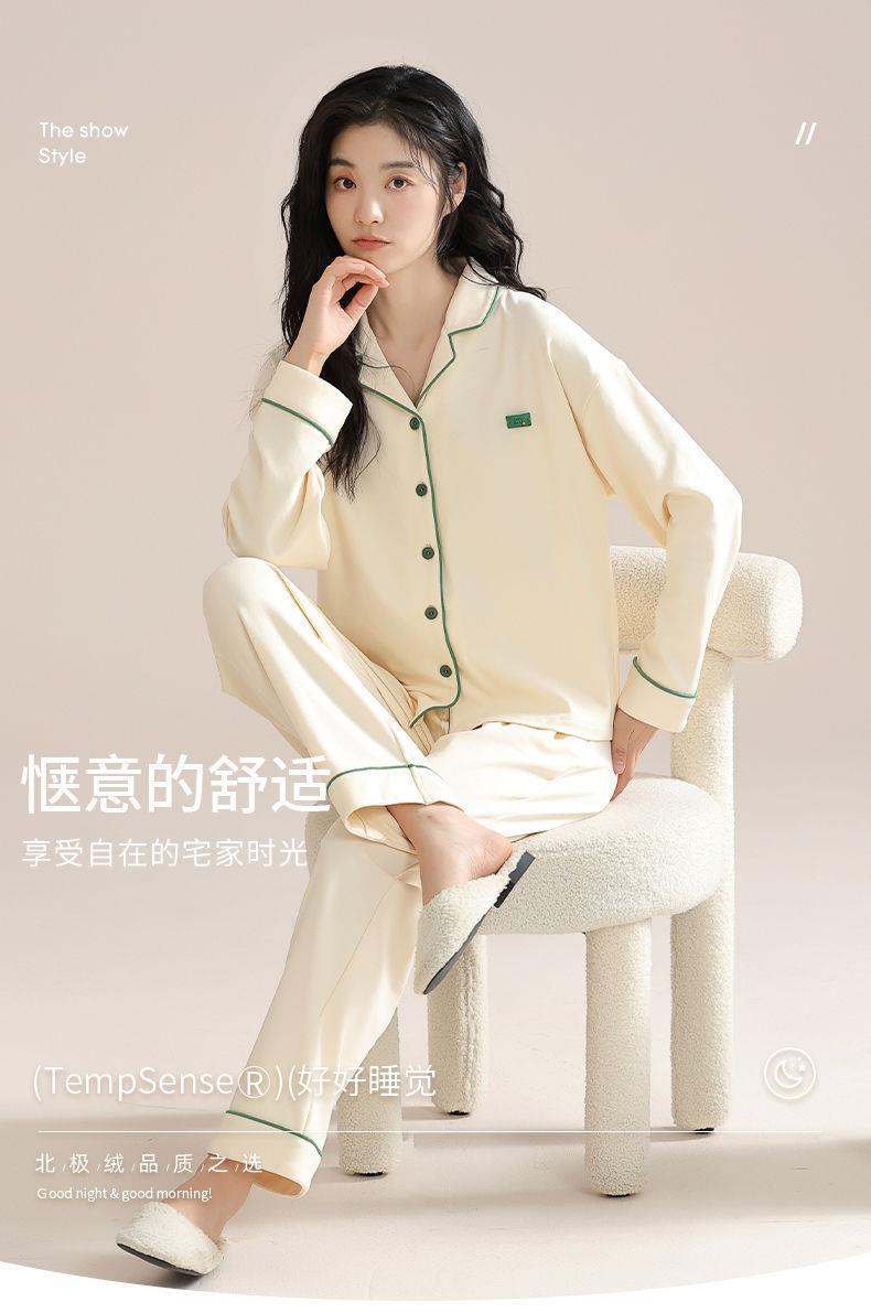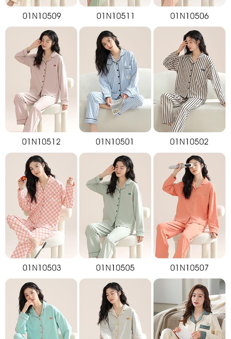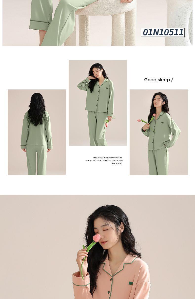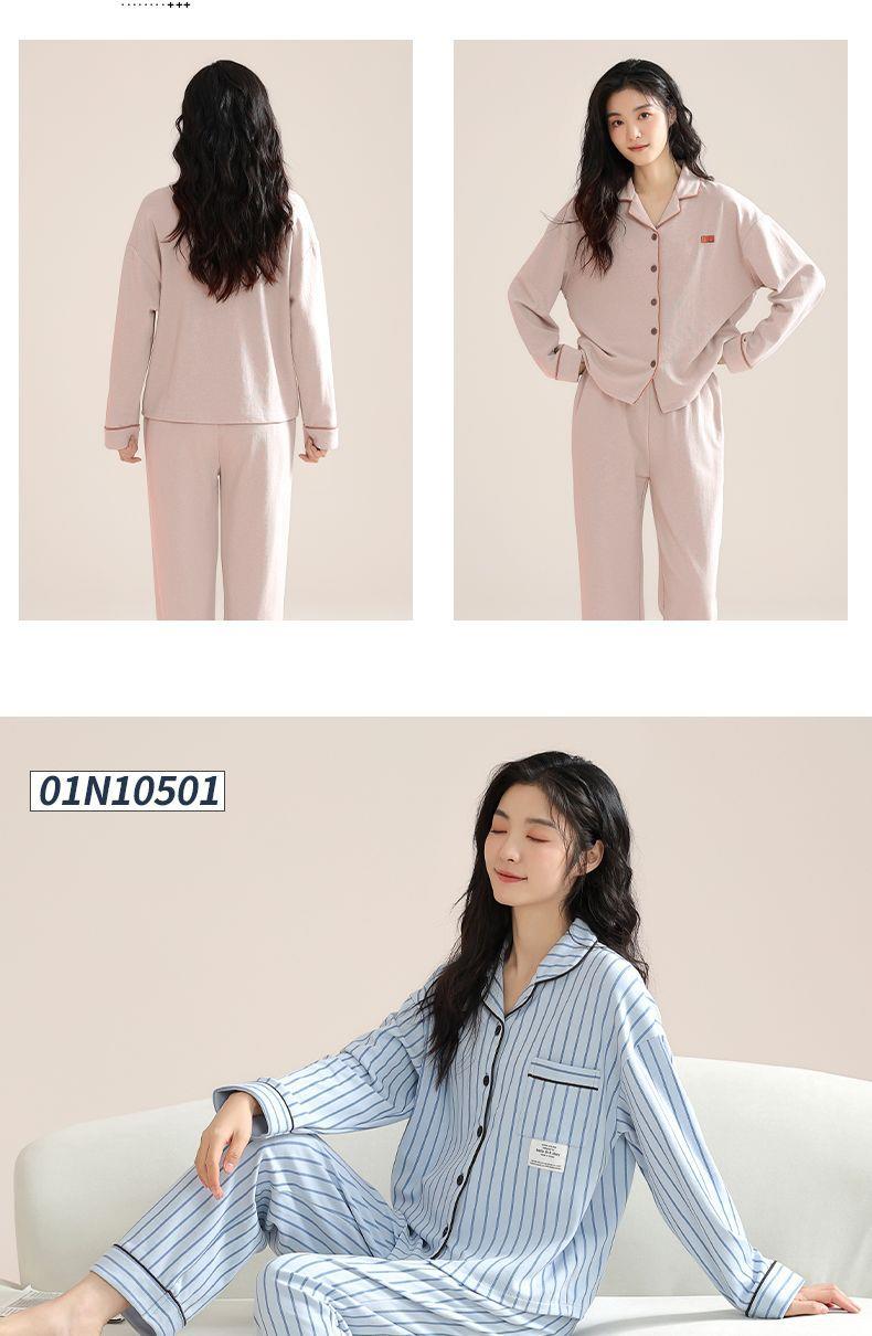 女士睡衣春秋季新款长袖可外穿大码家居服套装M-4XL★娃娃优选