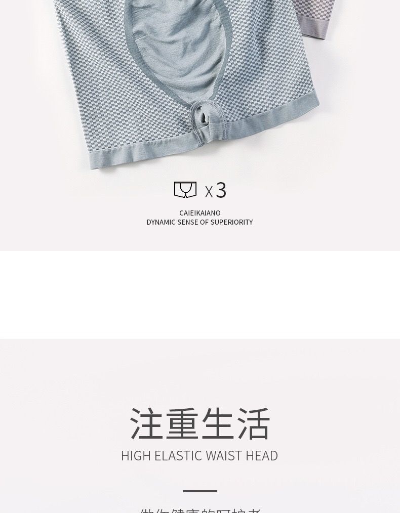 【3条装】魔改男士内裤四角短裤青年学生透气舒适无缝平角裤