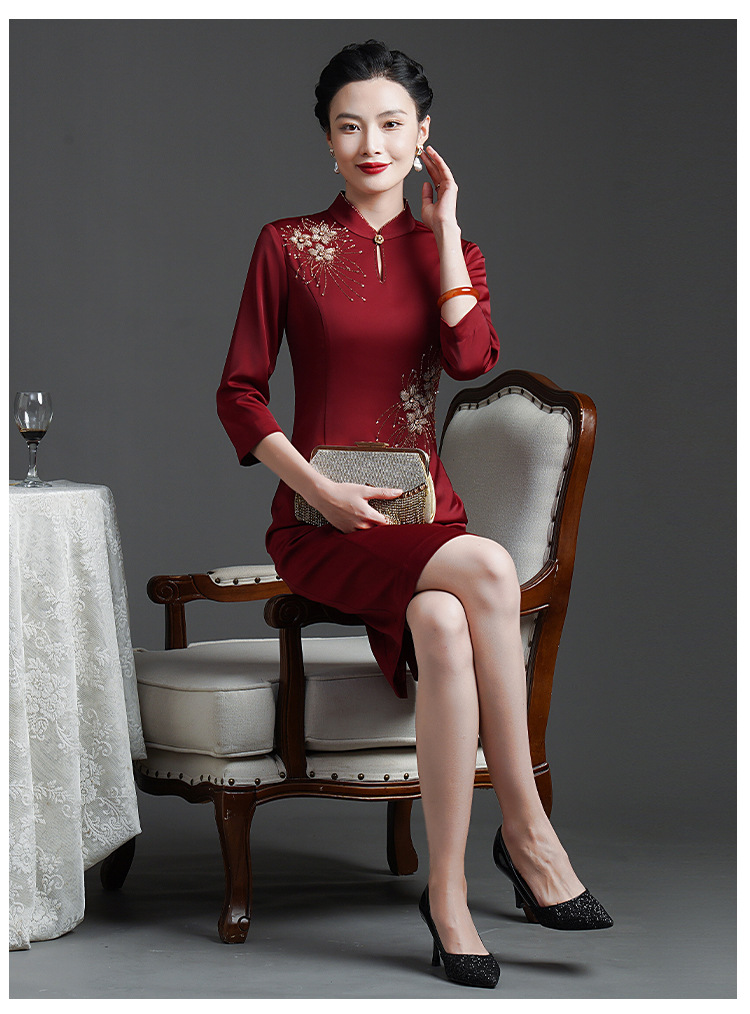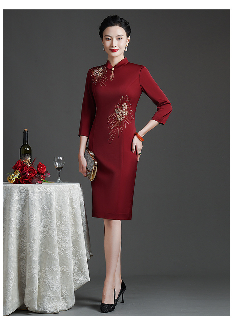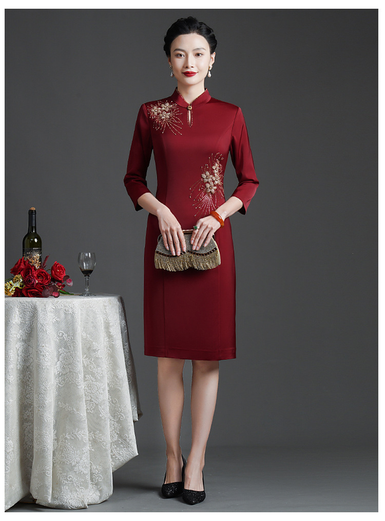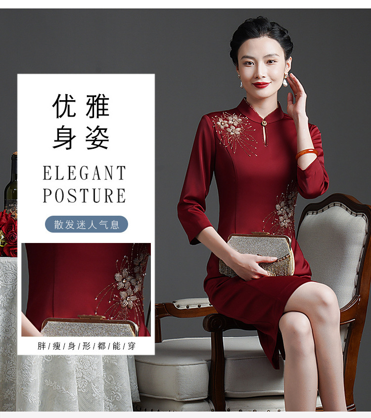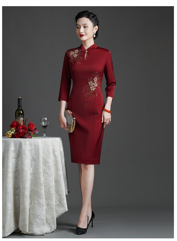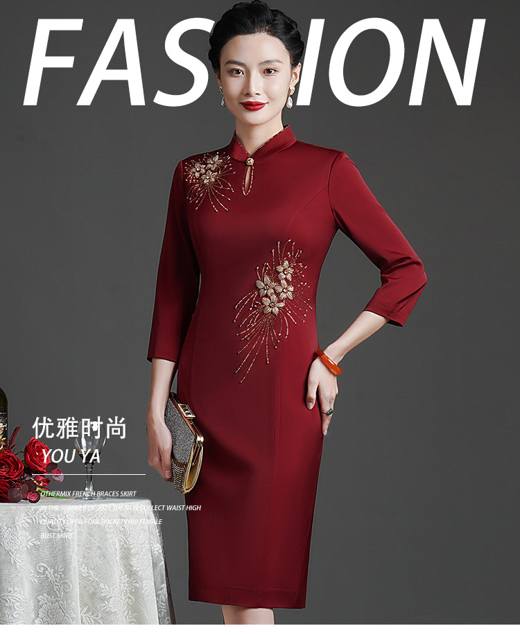 婚宴优雅中老年,旗袍改良连衣裙DY-Q6236