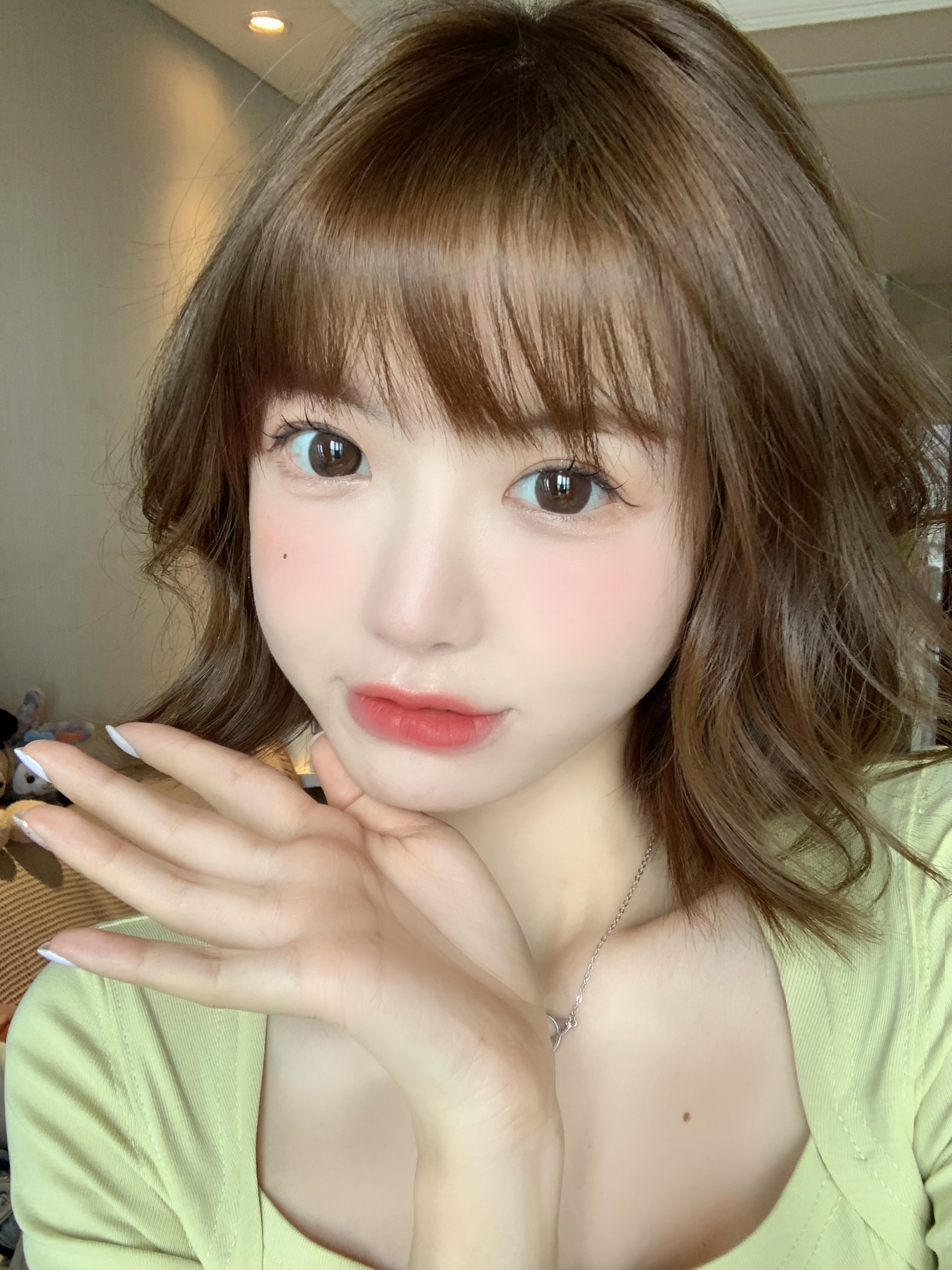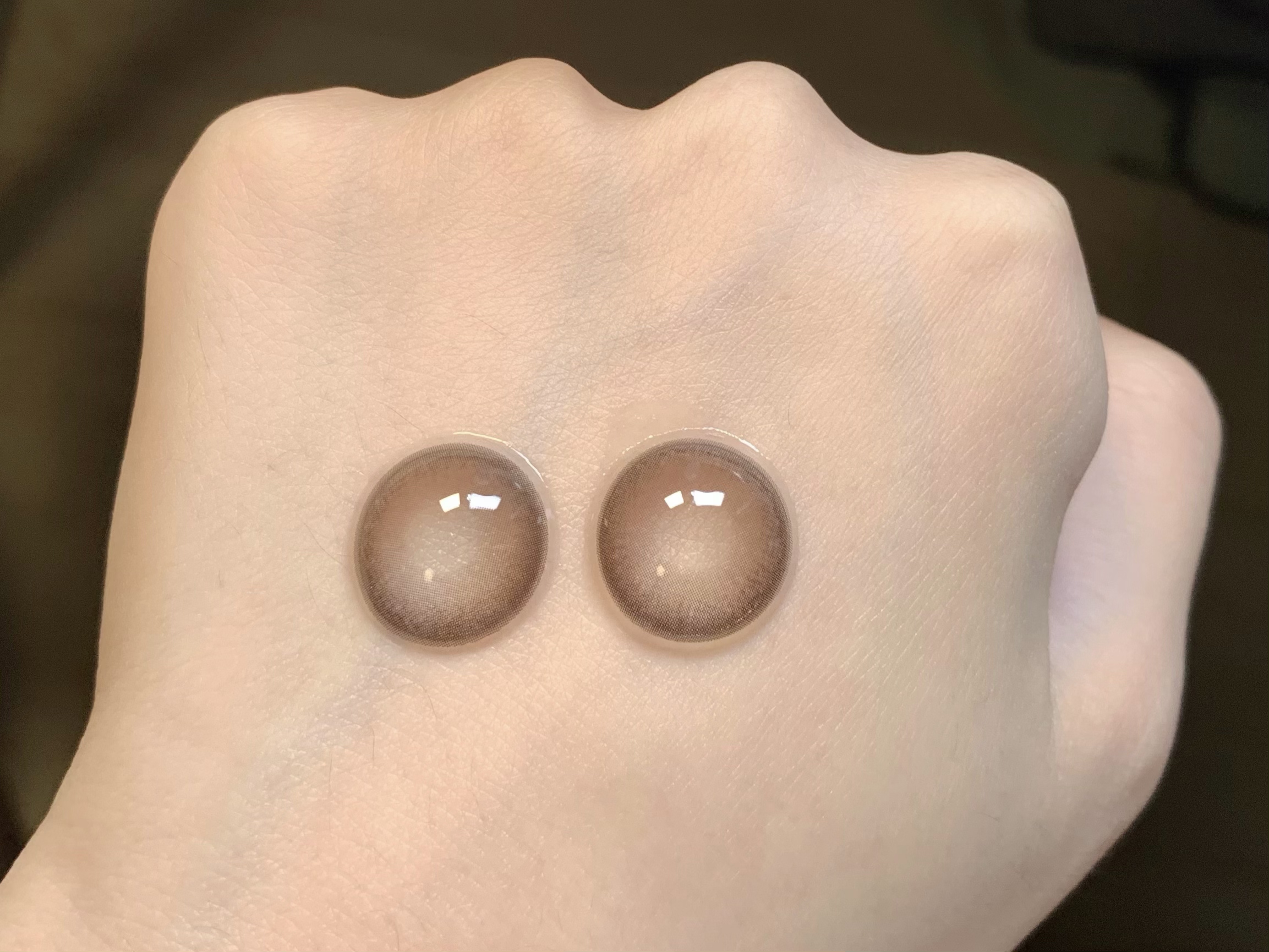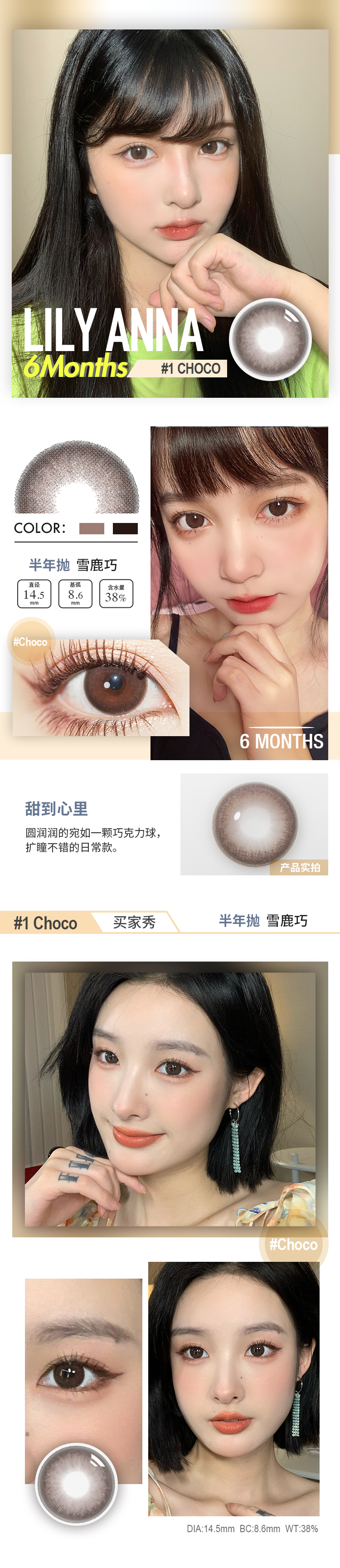 上眼着色13.6左右,软萌必备的大直径款,显得眼睛圆圆的,主色调是亚麻棕,完全不夸张哦,锁边大直径,混血浅瞳效果很OK,奶呼呼的很好看呢