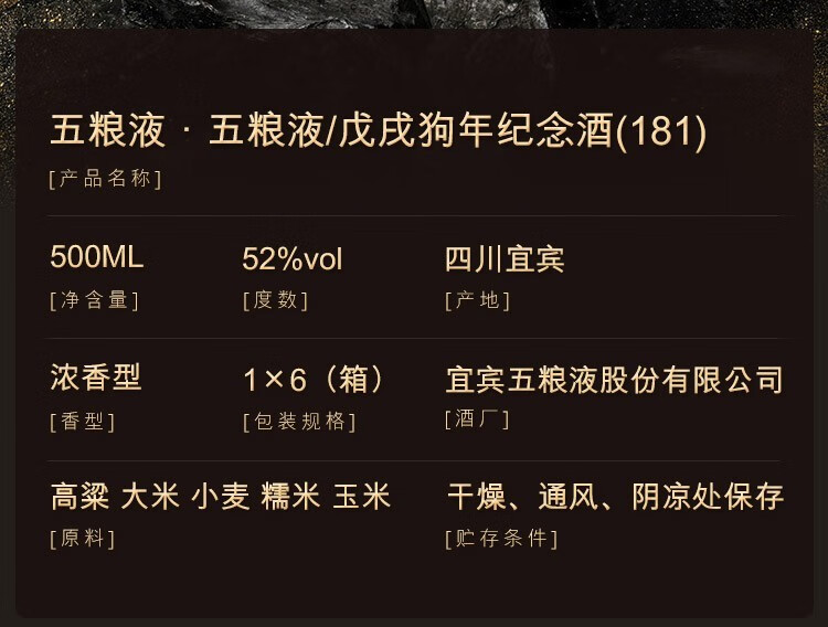 52度五粮液戊戌(狗)年纪念酒 500ml 单瓶(2020年老酒)