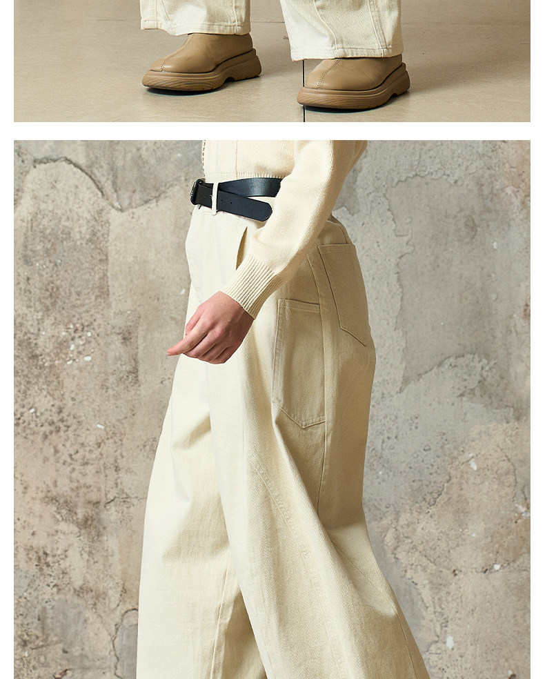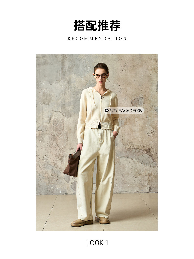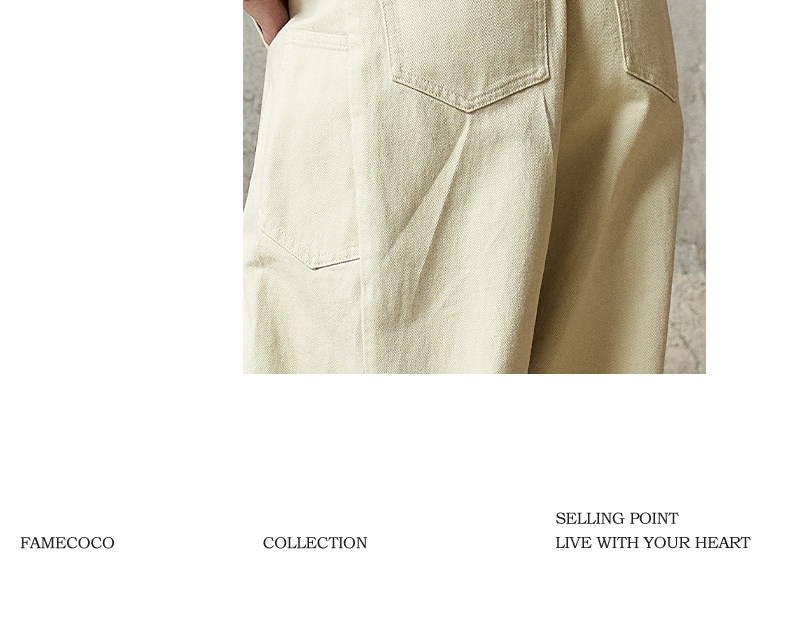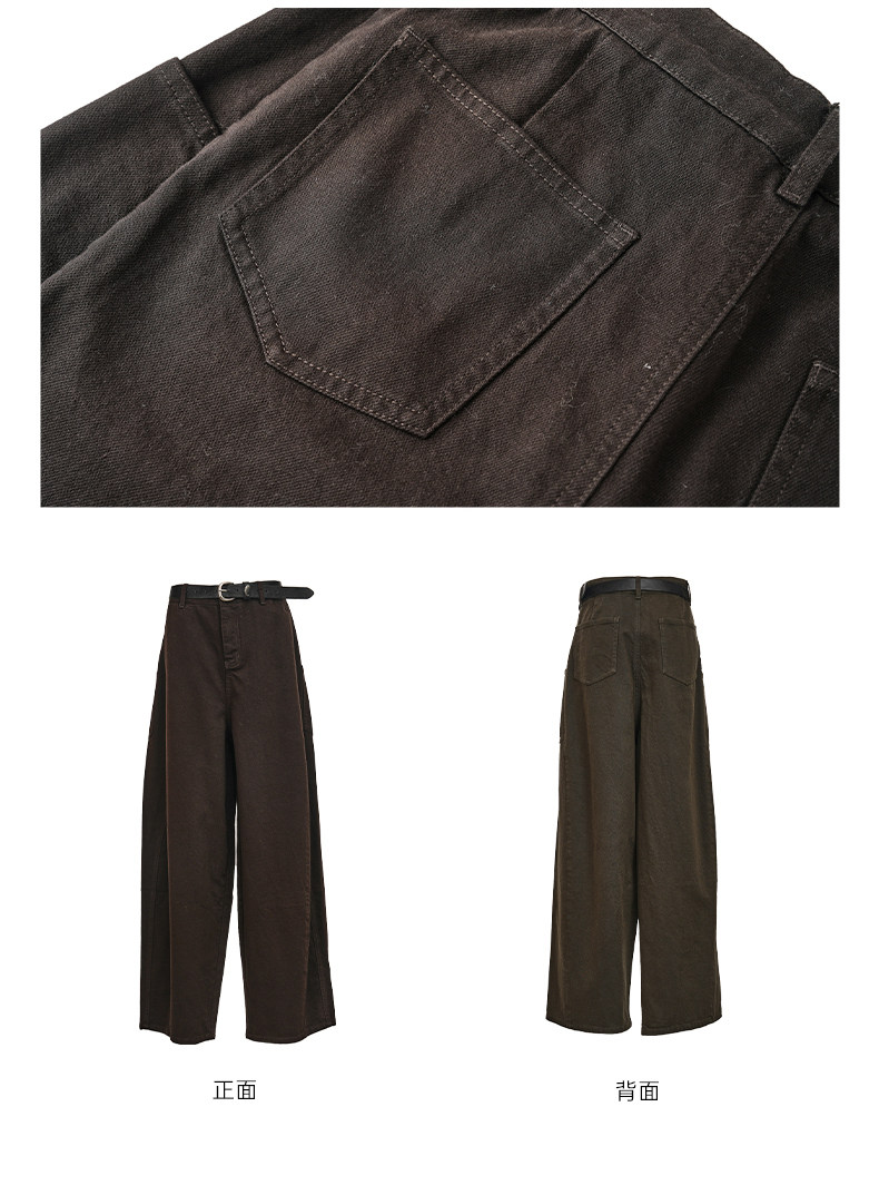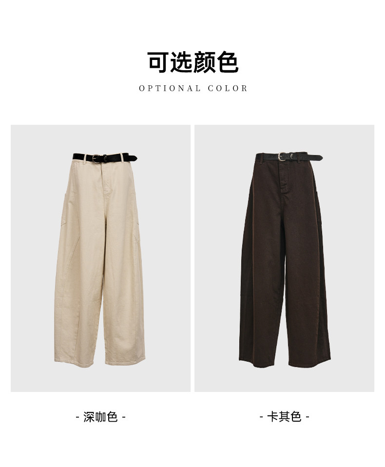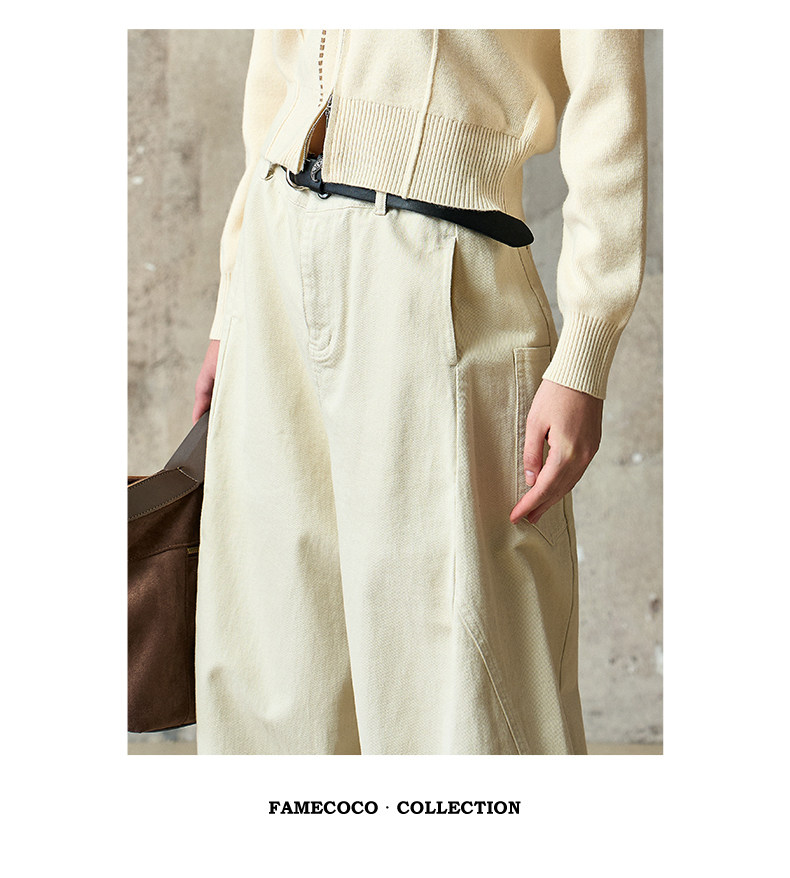 Famecoco范可儿工装风高腰弯刀裤宽松休闲加厚洗水棉香蕉裤FAD8GA128