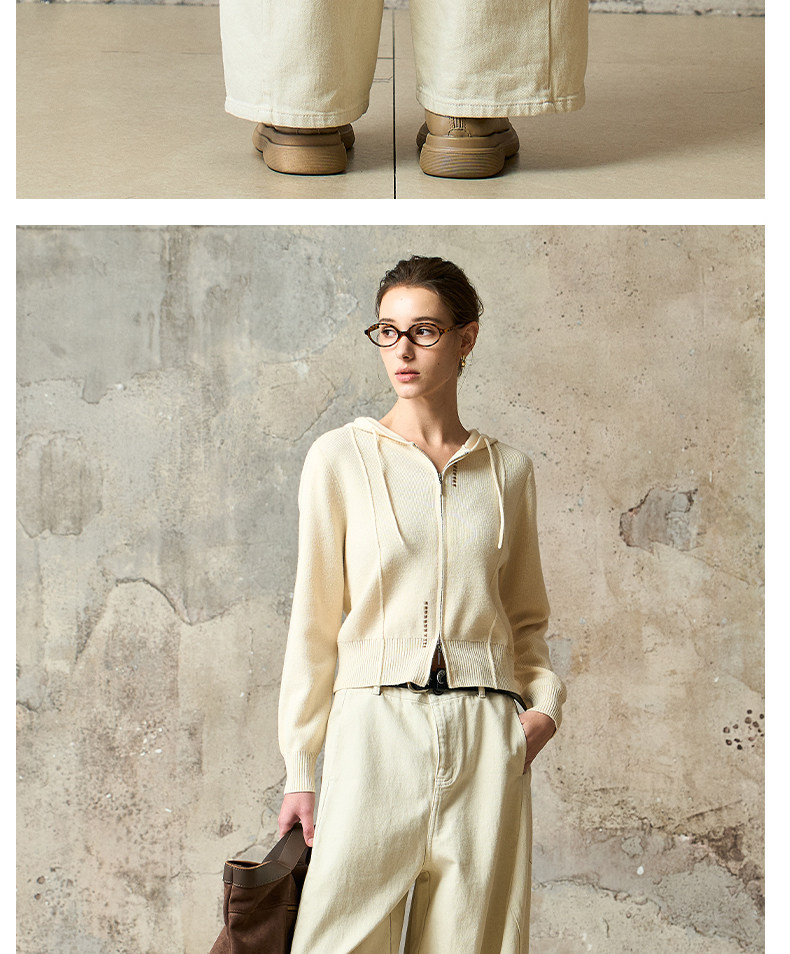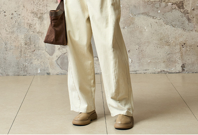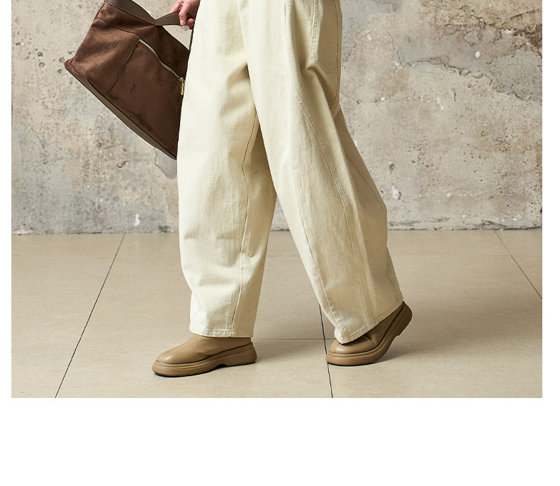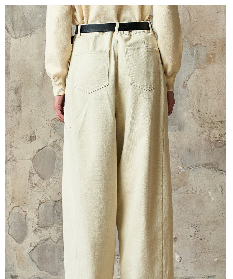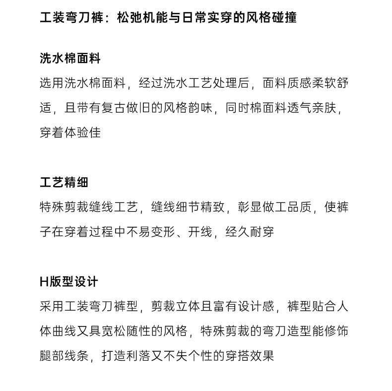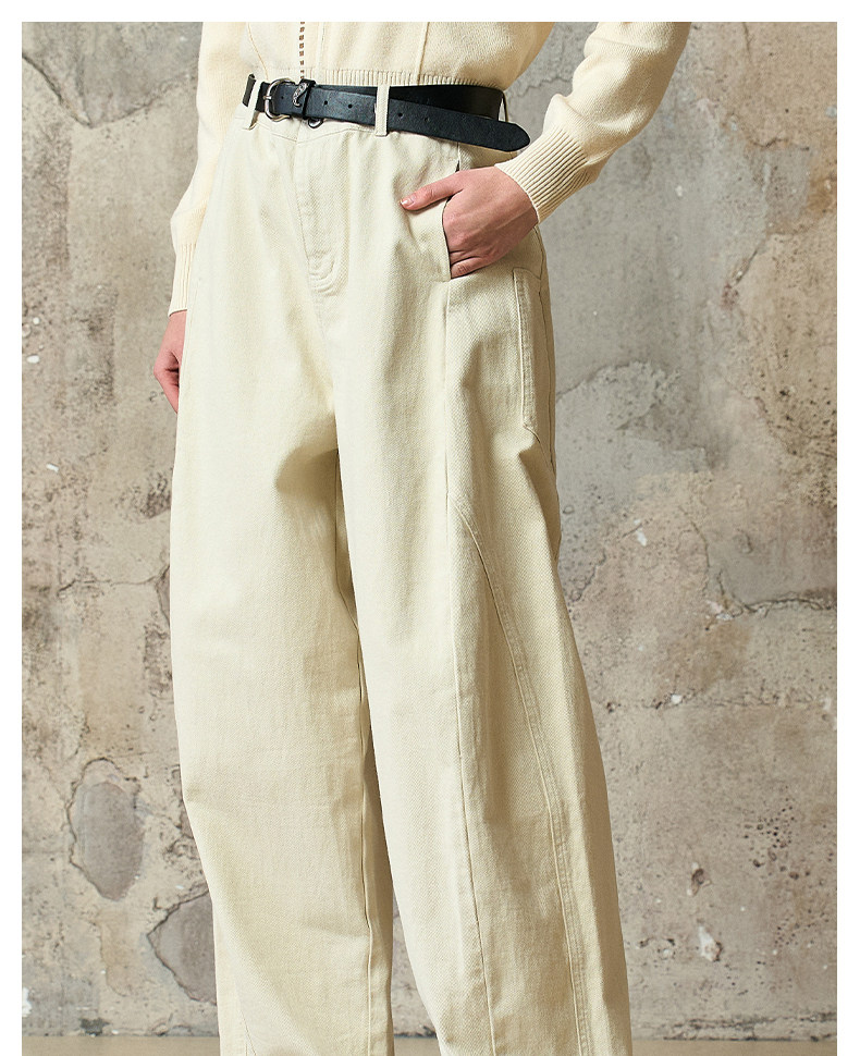 Famecoco范可儿工装风高腰弯刀裤宽松休闲加厚洗水棉香蕉裤FAD8GA128