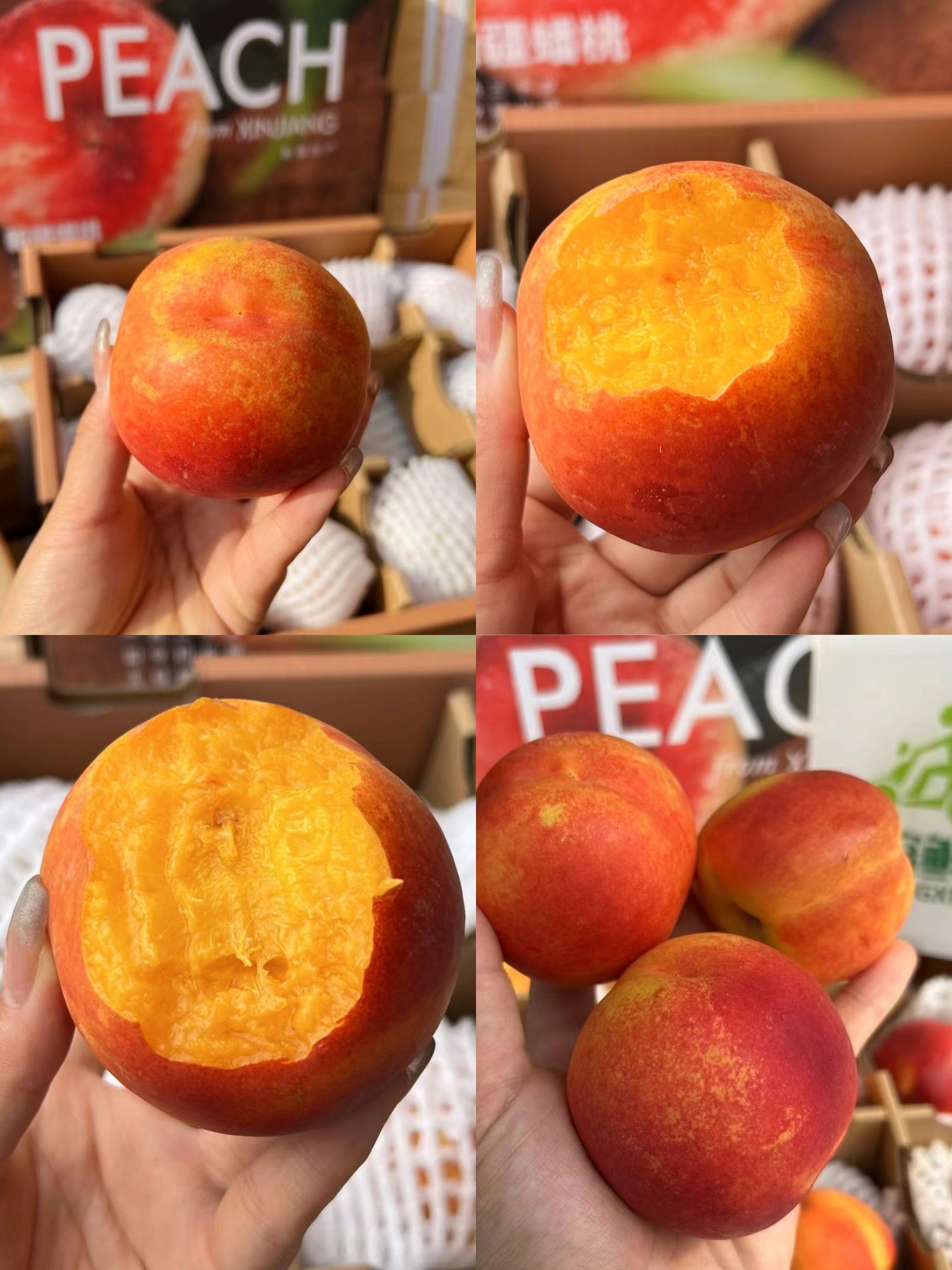新疆【秋蜜黄油桃】:鲜、香、色 鲜:每日清晨人工采摘,现摘现发,顺丰空运 香:果香浓郁,风味十足 色:红黄靓丽,金黄果肉 ☆☆☆口感:香甜流蜜,软糯适中,肉质细嫩、爽滑、多汁,是记忆中的桃子原本味道