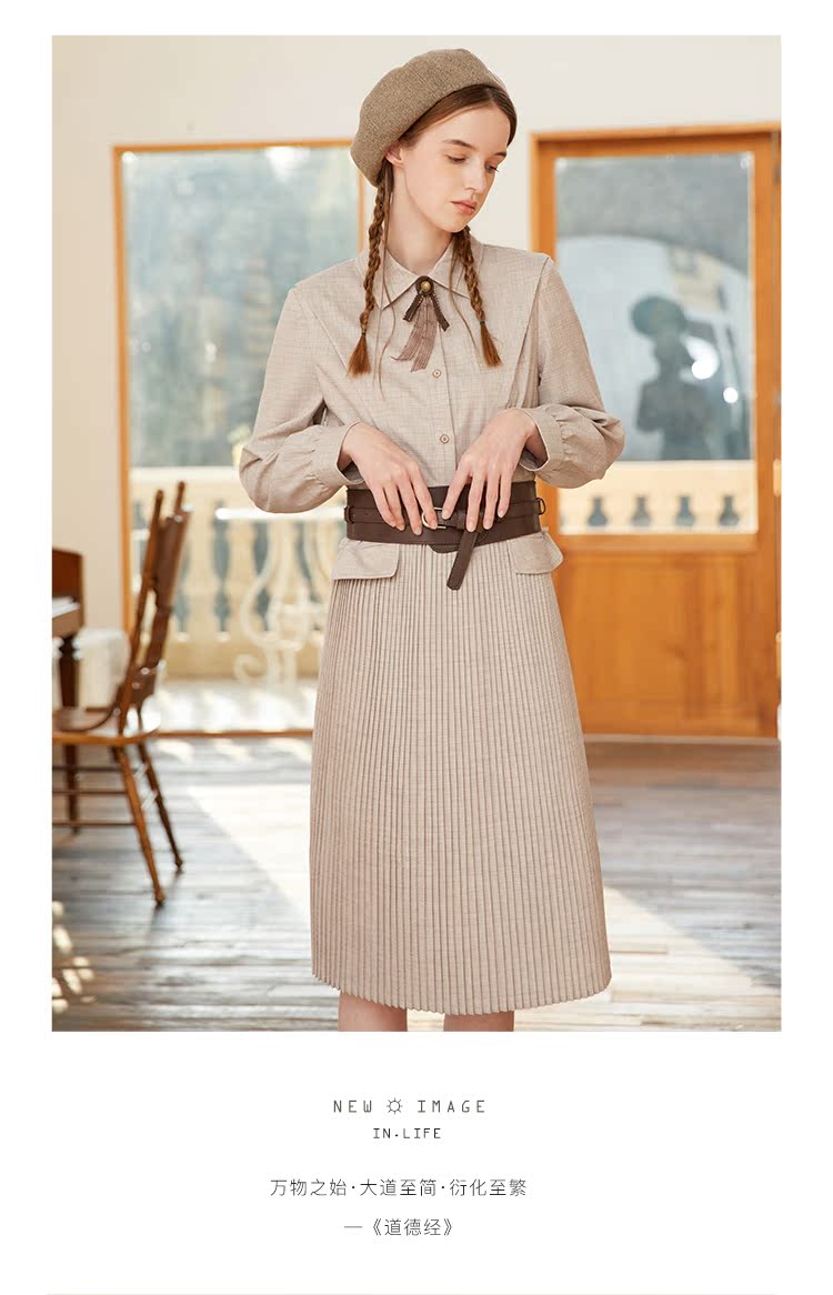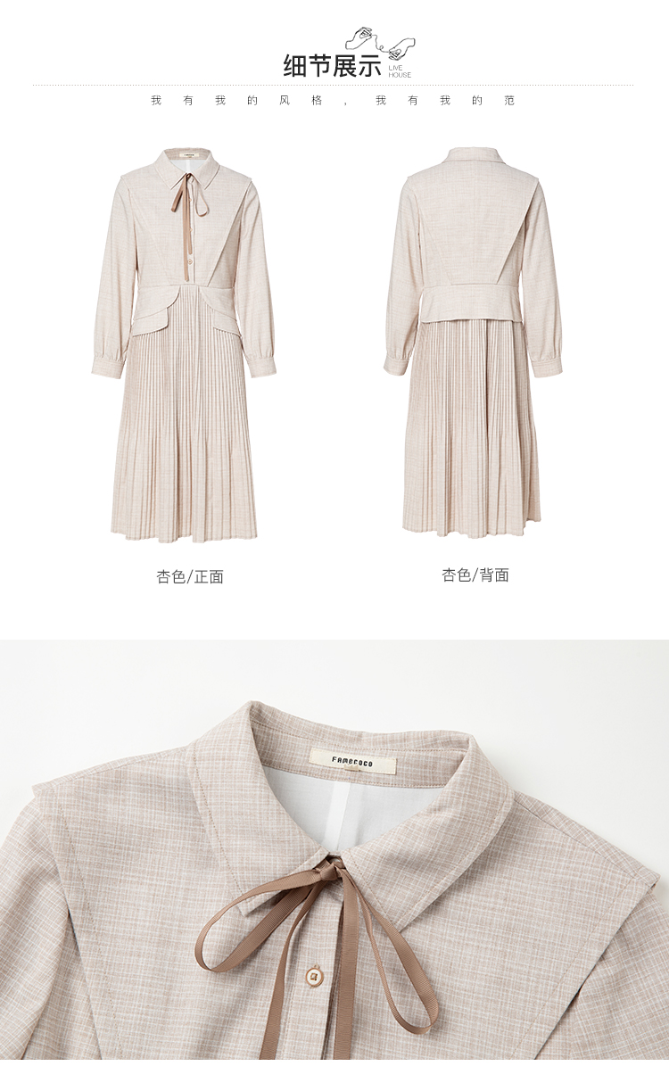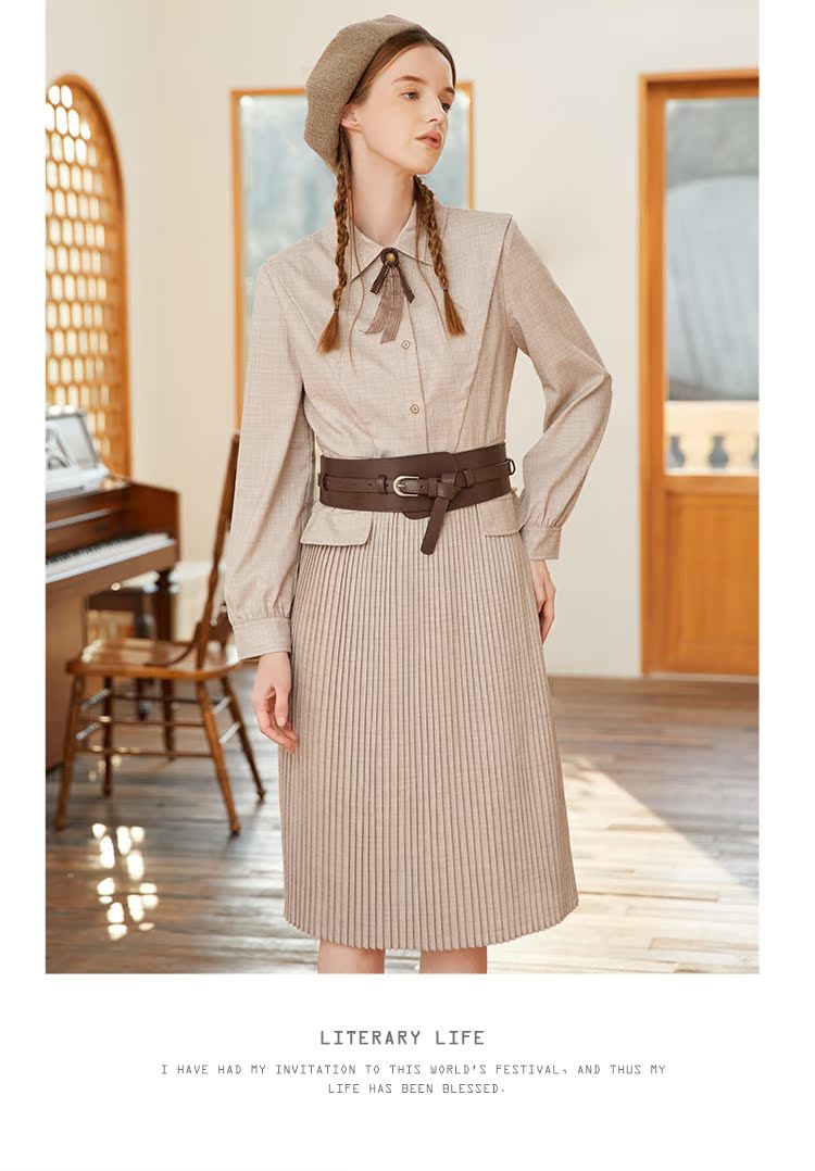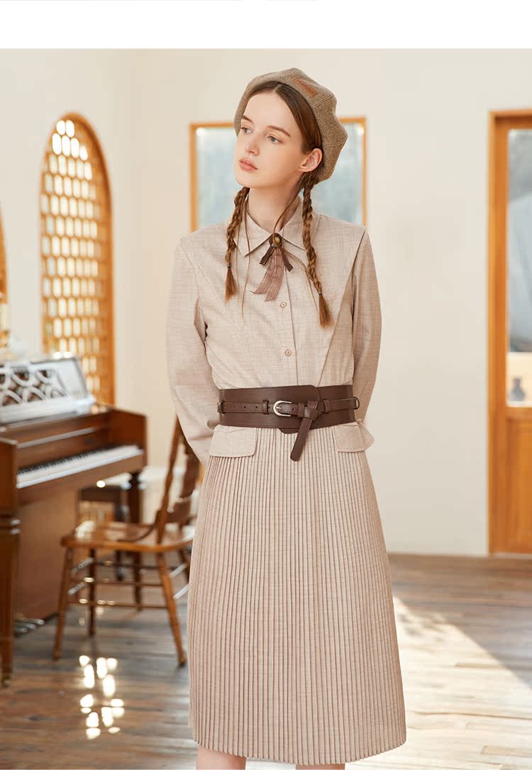 famecoco范可儿冬季优雅衬衫裙女士长袖修身百褶裙中长款F228FA001