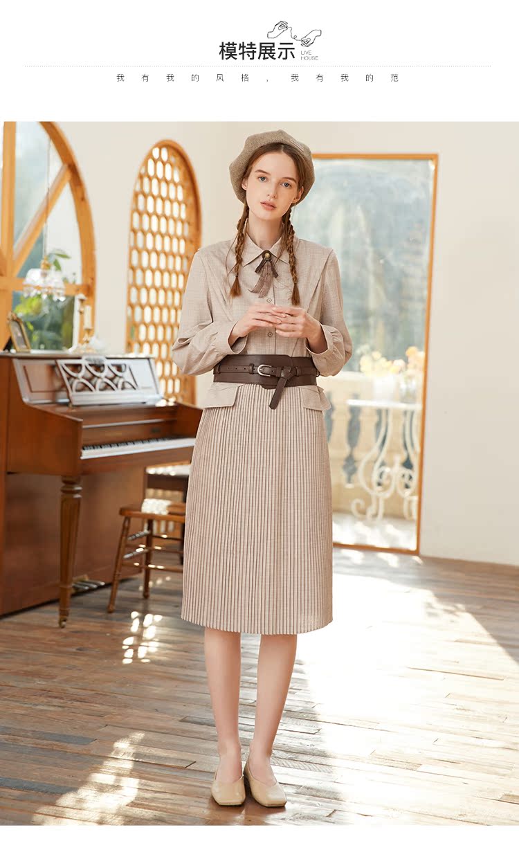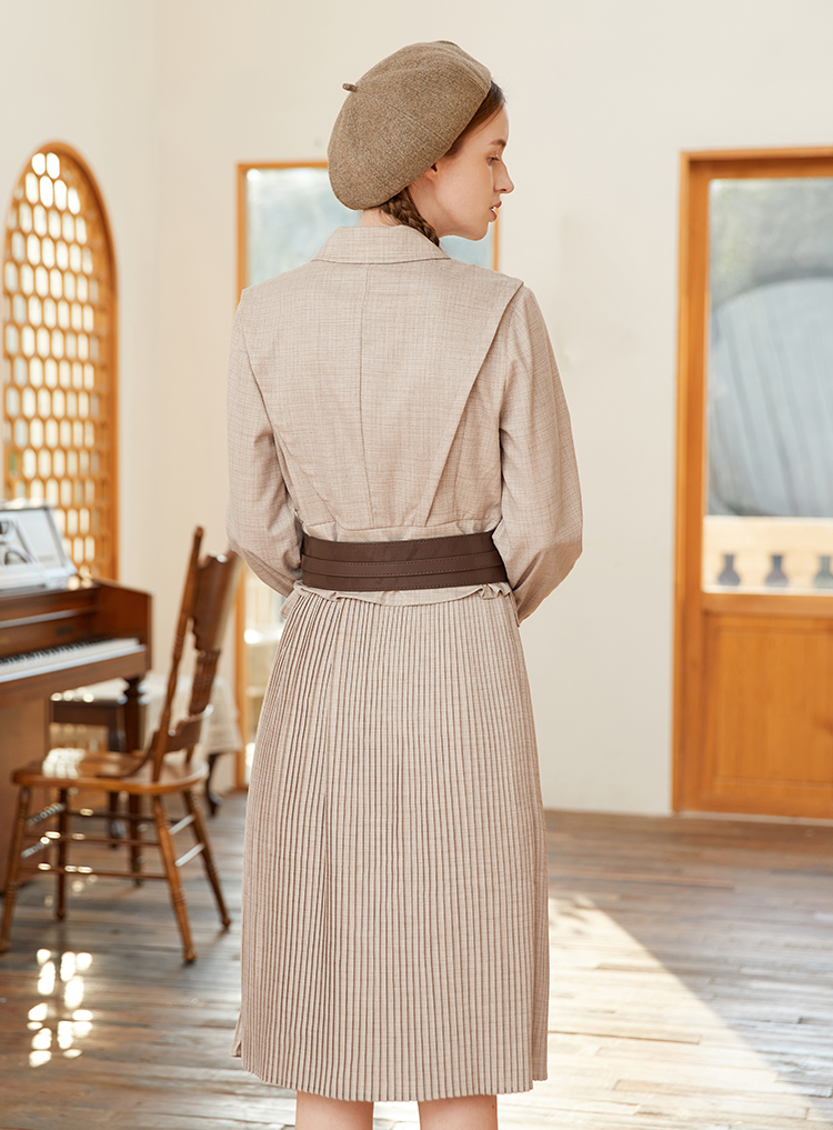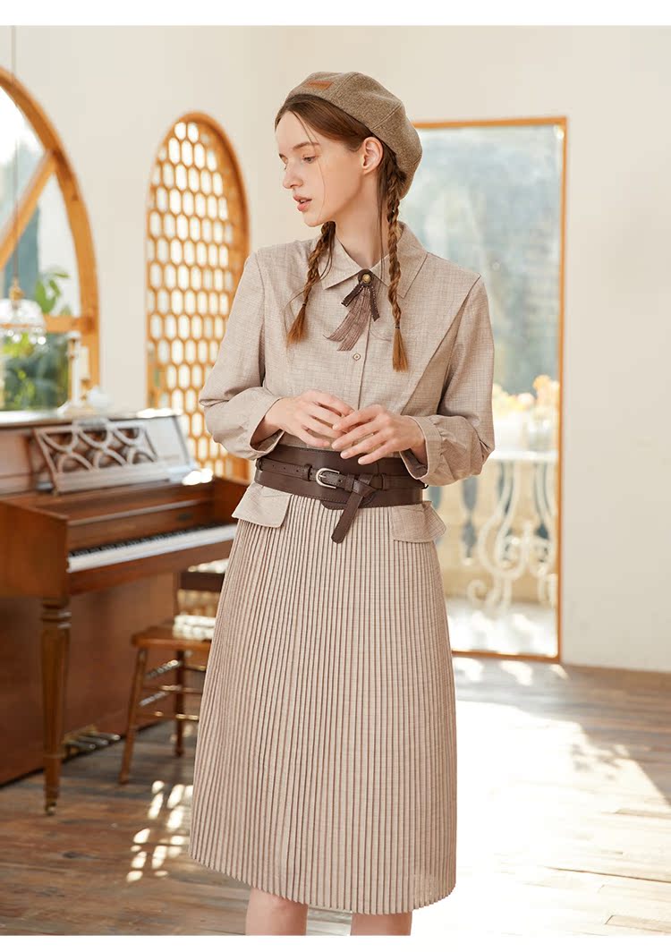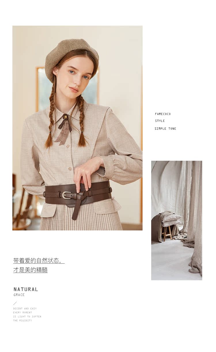 famecoco范可儿冬季优雅衬衫裙女士长袖修身百褶裙中长款F228FA001