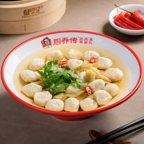 厨乔传手工鱼丸 ——值得你一辈子反复品尝的人间美食! 它久煮不绵口,煮再久依然香嫩弹牙! 它温润而不腥,让怕吃海味的人大快朵颐! 它鲜美而悠长,吃完鱼丸还想喝汤还想舔碗舔唇! 煮粉 煮面 都是最佳选手