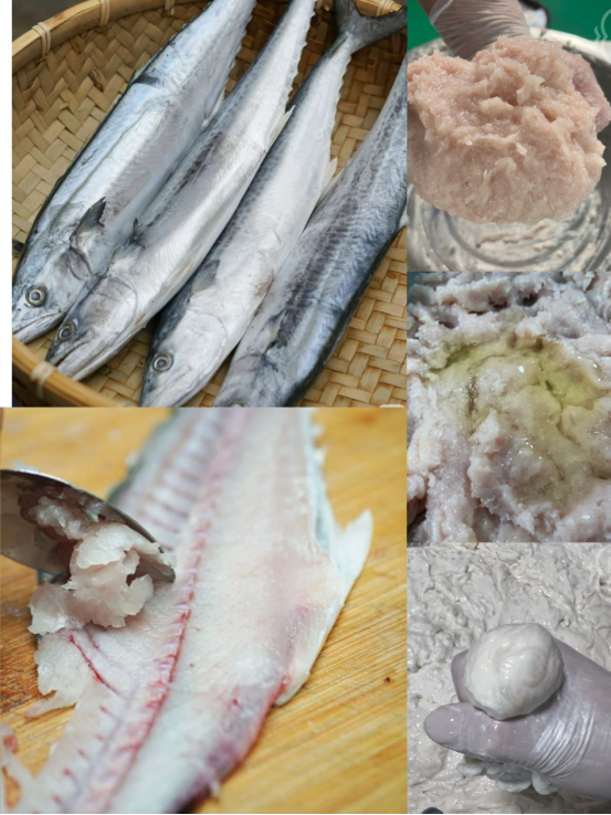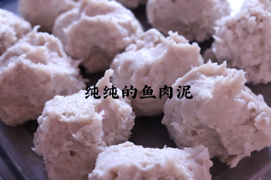 🌟鲜于好工艺 鮸鱼丸的制作工艺 30年老师傅手工制作手工鱼丸是一门手艺活,从选鱼、剔肉、槌泥、搅打、挤丸、配比...... 每一个工序都是精益求精的重复,不少师傅都是30年+的经验。 “刮肉取蓉”法:为了获得最纯净的鱼肉,老师傅常将鱼肉剖下后,用刀或勺子顺着鱼骨的走向细细地刮取鱼蓉。 这种方法能完美地避开小刺和鱼红肉,确保鱼丸色泽洁白、口感纯净。