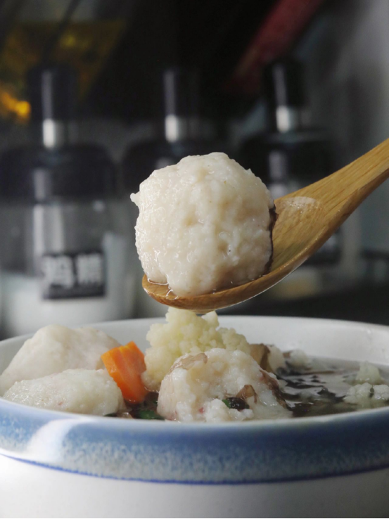 控制水温:煮制鱼丸时,讲究“温水下锅”,让鱼丸在逐渐升温的水中慢慢定型、成熟。 这样能保证鱼丸内外熟度均匀,口感达到最弹嫩的状态,不会因突然遇热而外表变老、内部夹生。