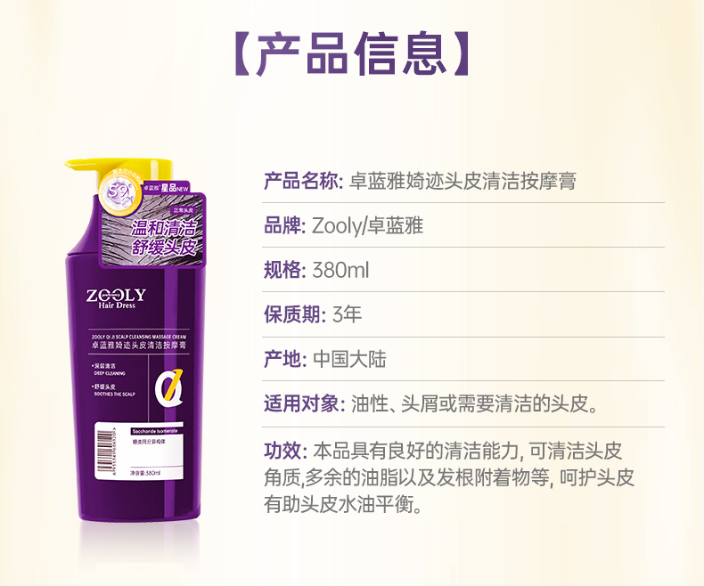 清仓【2件49元】卓蓝雅婍迹按摩膏380ml 去屑止痒 舒缓头皮 深层清洁 疏通毛囊