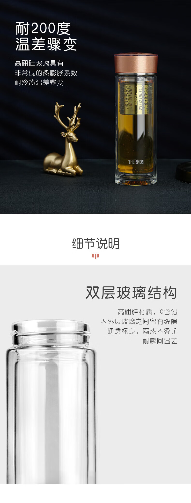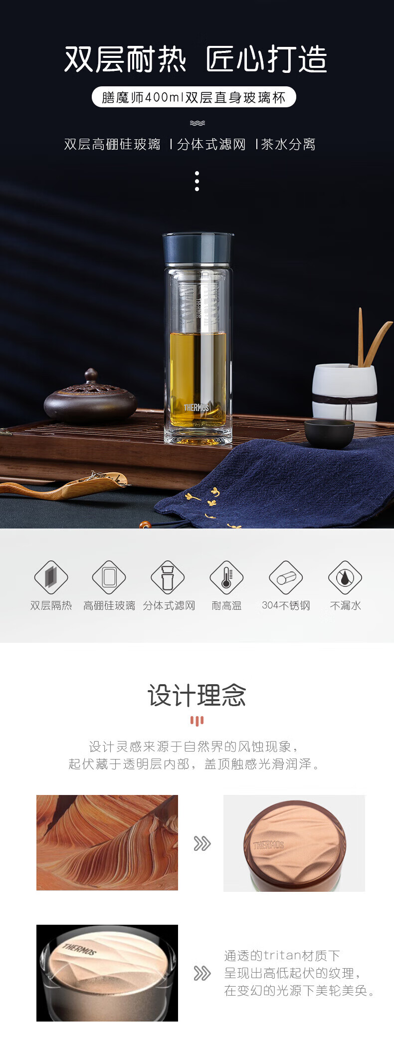 膳魔师 双层玻璃杯TCGE-400