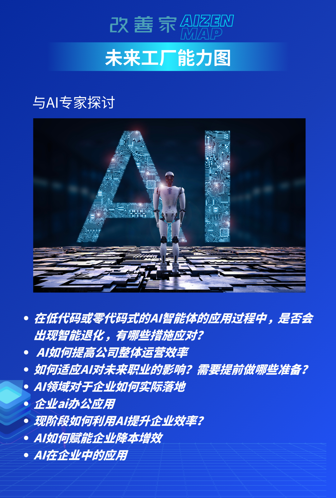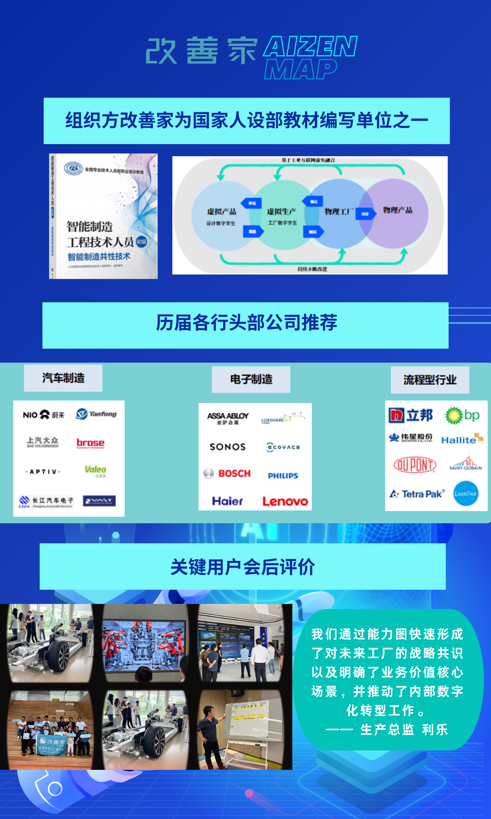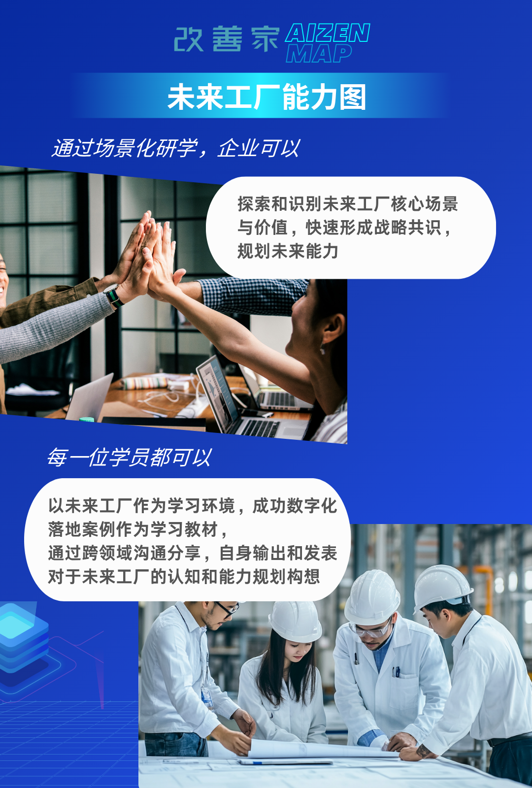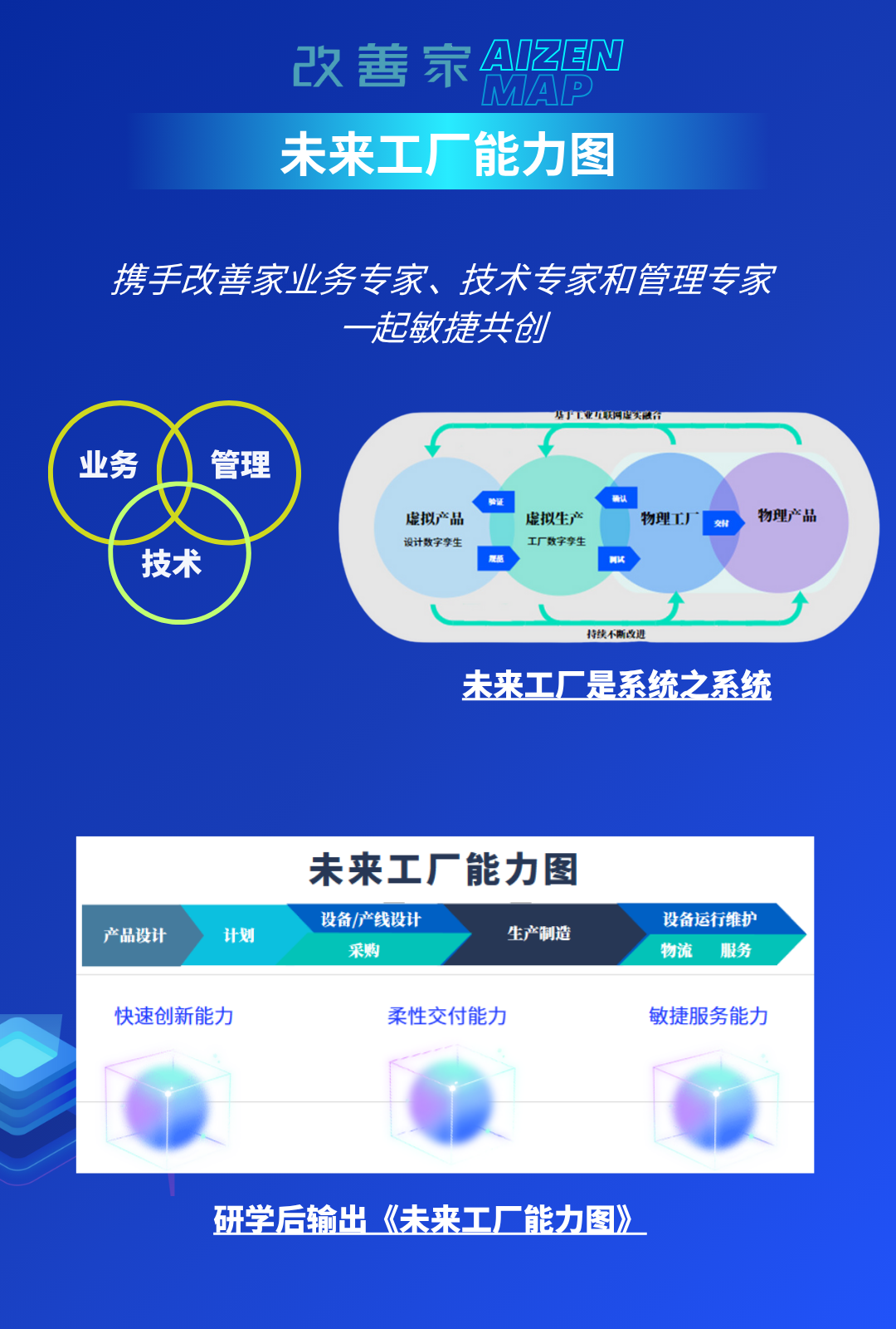 - 改善家是未来工厂新型能力服务商,帮助数字化转型的制造企业提供能力图、能力营和能力元产品服务,以新型能力的建设全方位牵引企业的数字化转型。