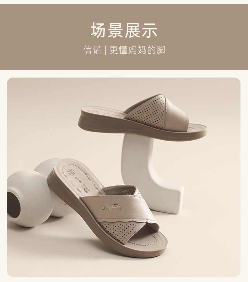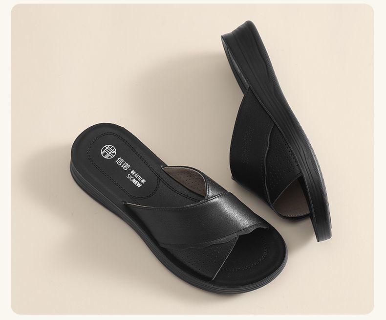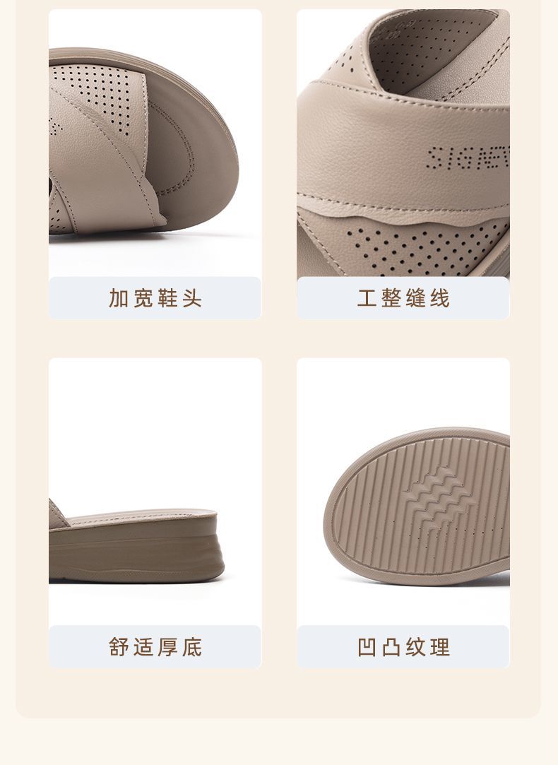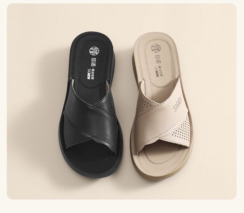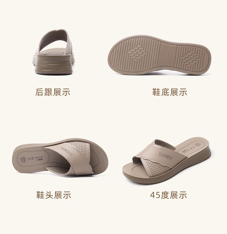 信诺真皮外穿休闲一字拖鞋女款2025夏季新款休闲厚底中年妈妈鞋子5L618-31