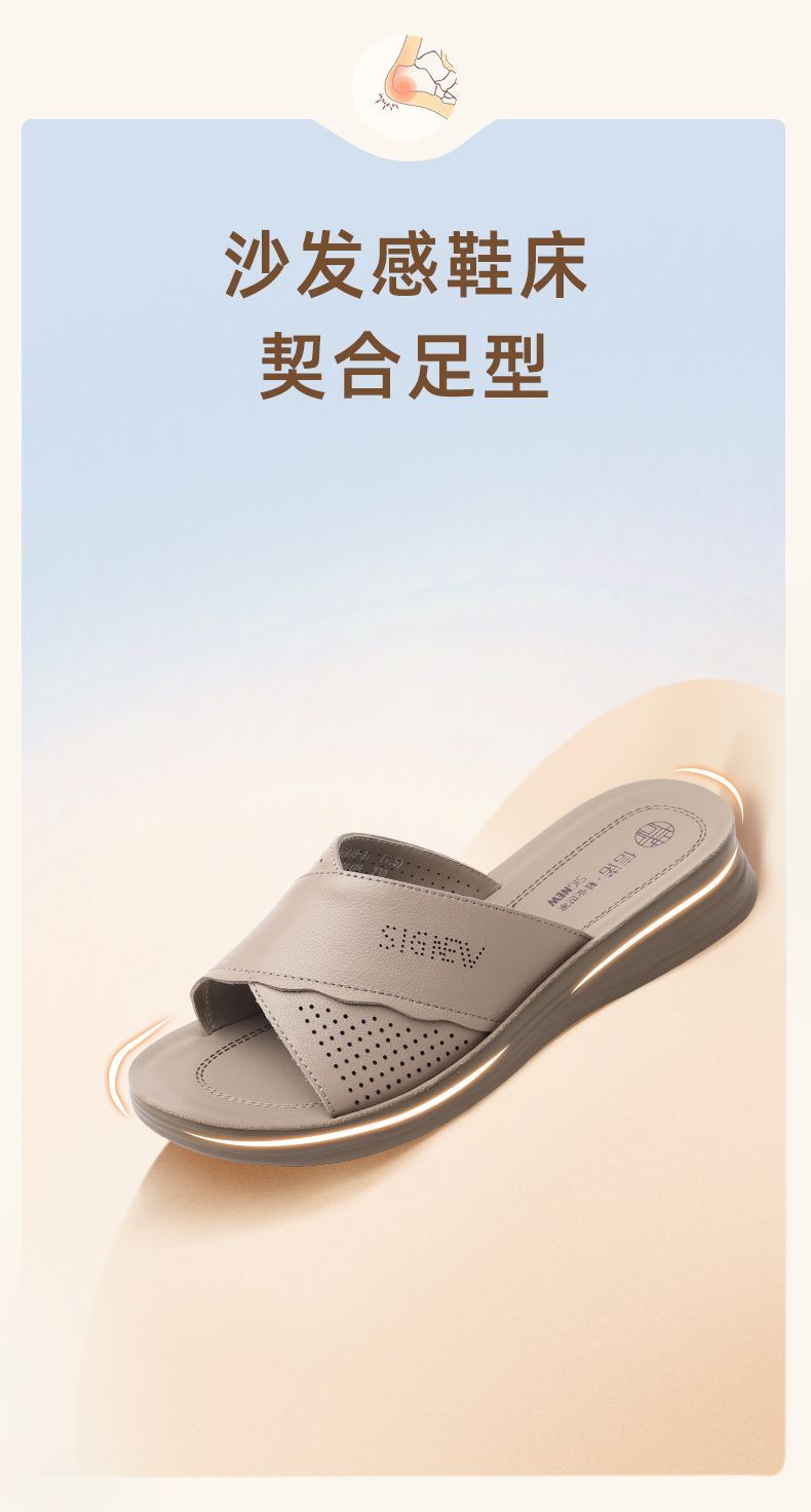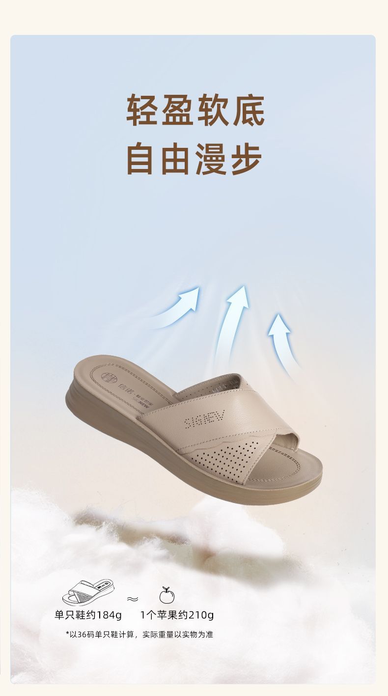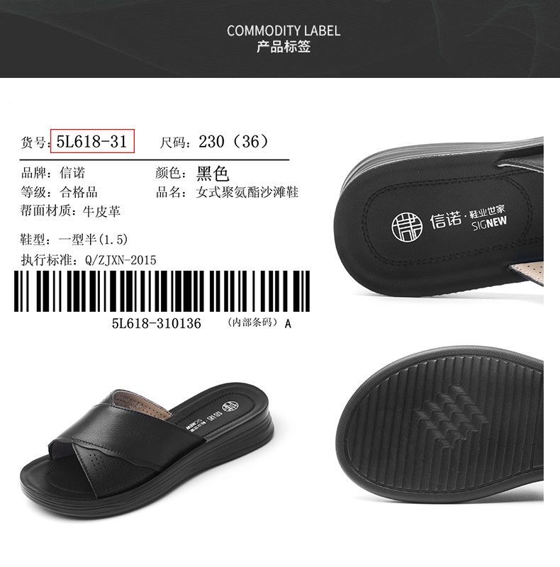 信诺真皮外穿休闲一字拖鞋女款2025夏季新款休闲厚底中年妈妈鞋子5L618-31