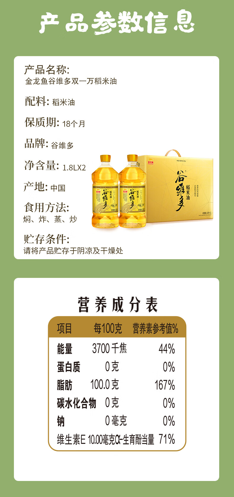 金龙鱼 葵花籽油礼盒1.8L*2瓶 稻米油礼盒装 节日送礼