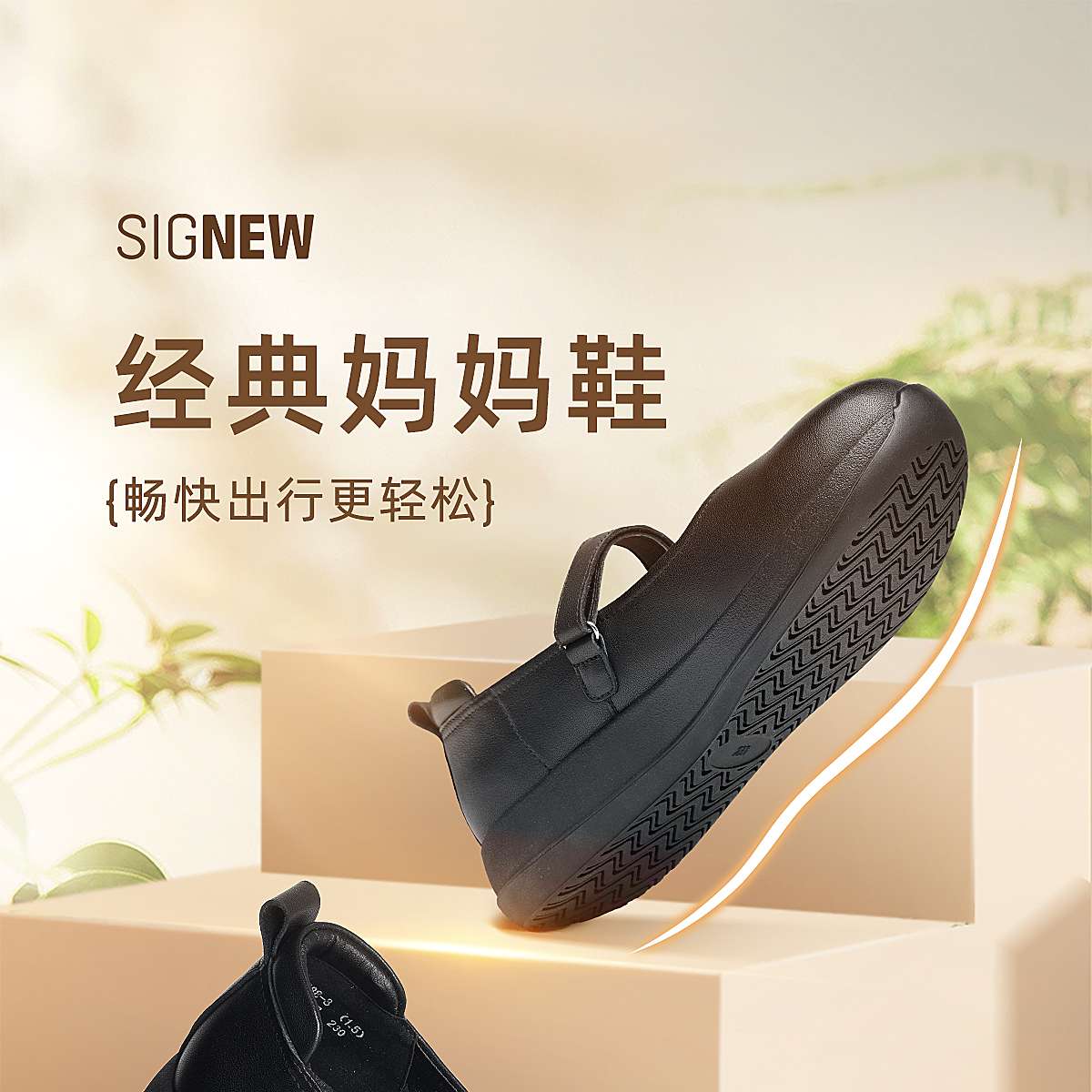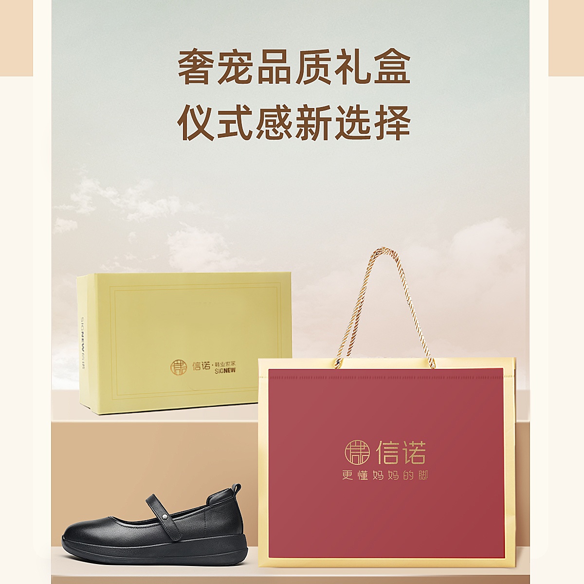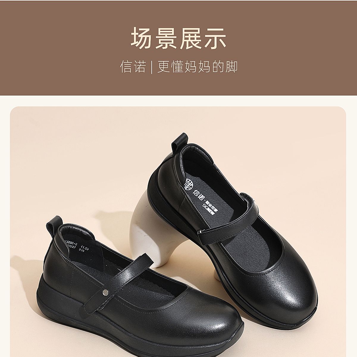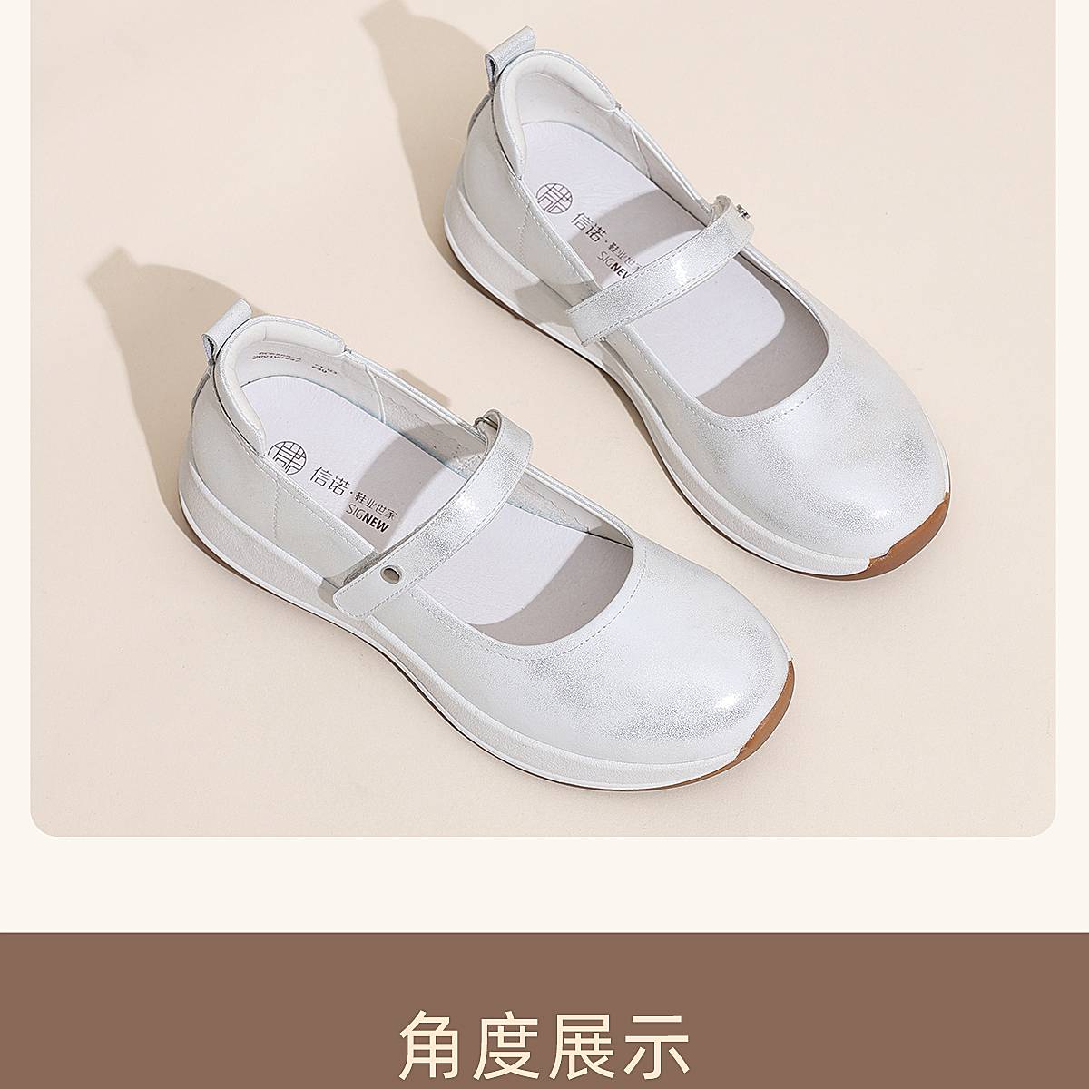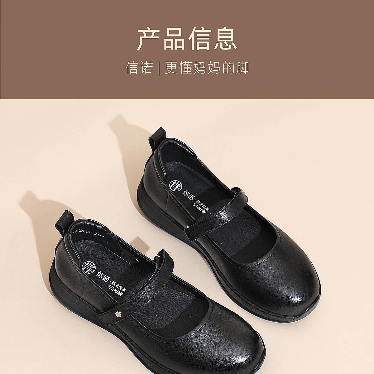 信诺妈妈鞋时尚百搭真皮女士玛丽珍鞋一字带软底单鞋2026春季新款6C5288-8T