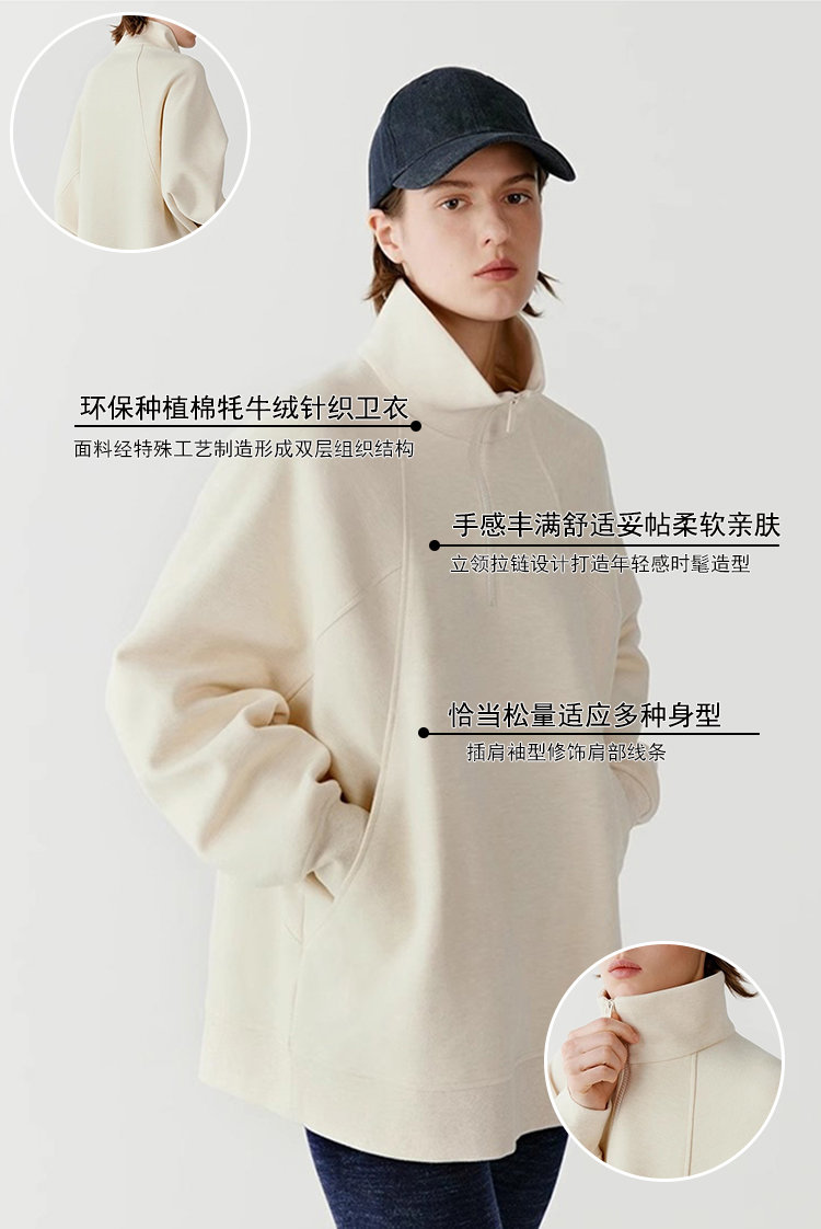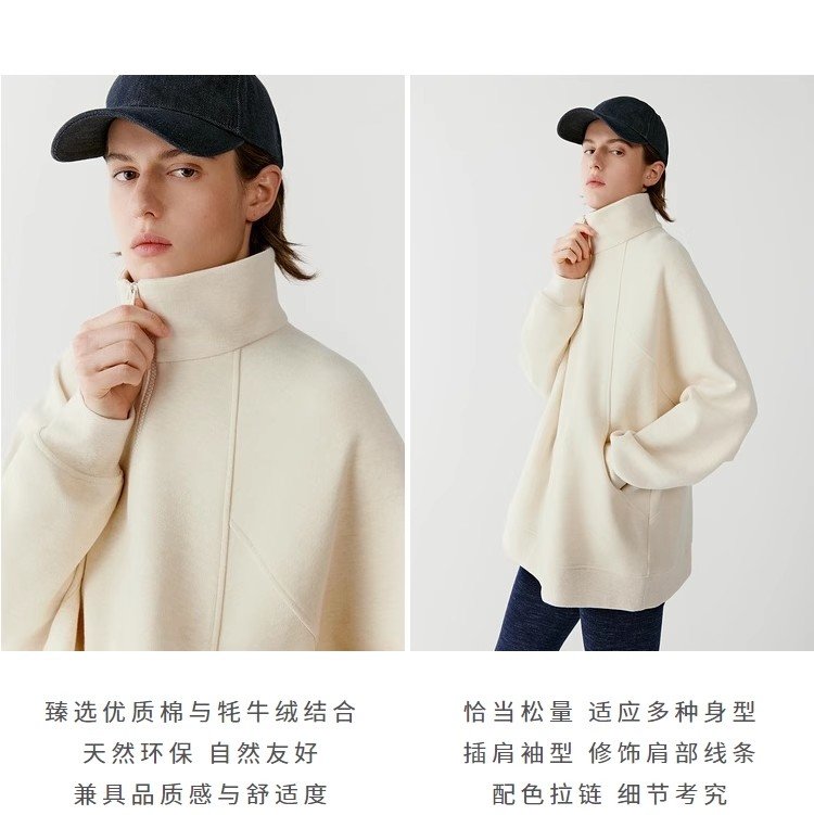 小禾环保棉牦牛绒针织小立领拉链卫衣