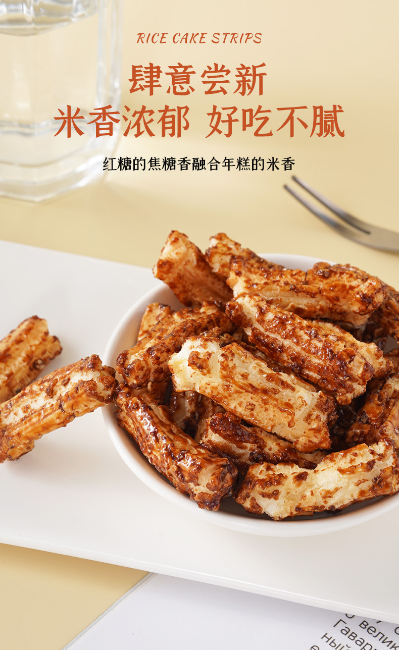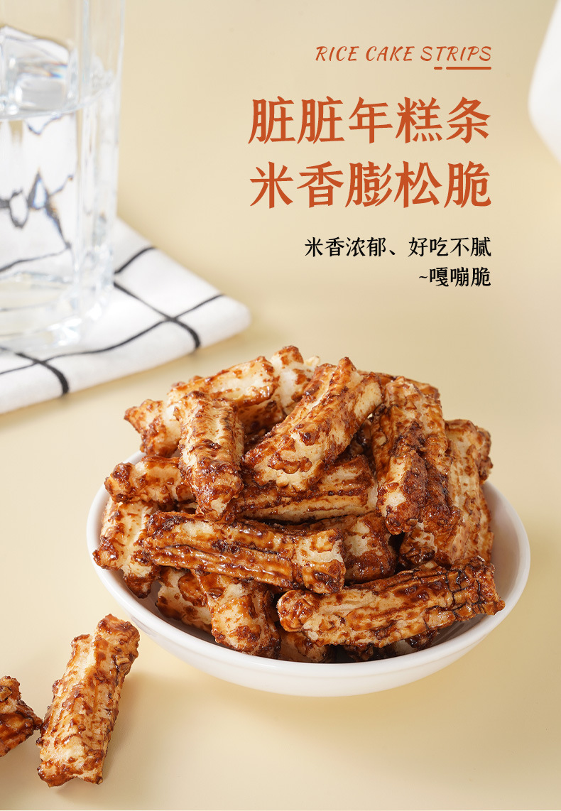 【米香膨松脆!脏脏年糕条】传统工艺老味道,米香浓郁,好吃不腻 嘎嘣脆~红糖的焦糖香融合年糕的米香,酥脆中带些微甜!网红休闲膨化零食追剧解馋小吃Y
