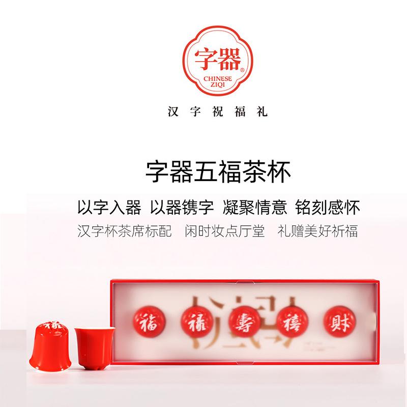 【五福茶杯】创意陶瓷茶具茶杯礼盒