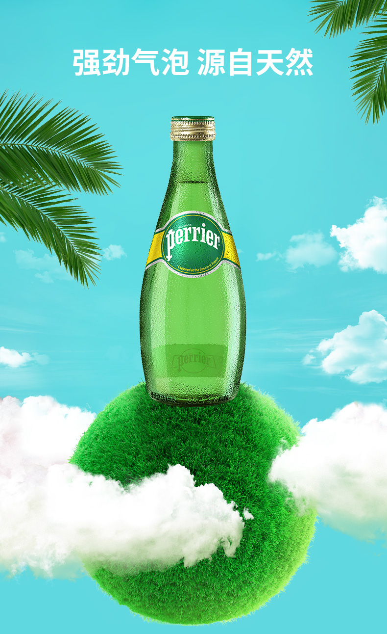 法国巴黎水(Perrier)无糖气泡水充气天然矿泉水 原味330ml*24