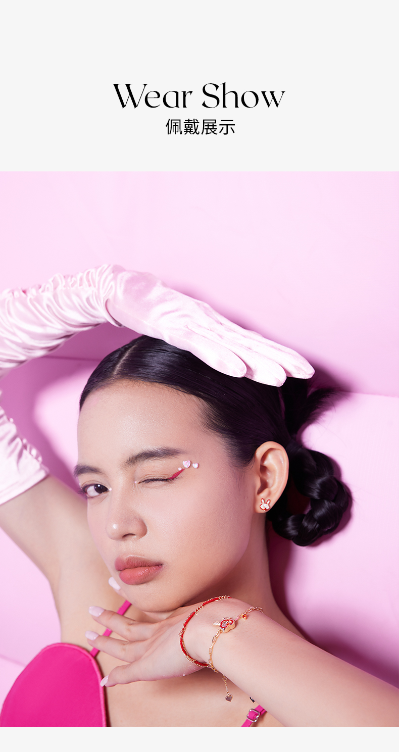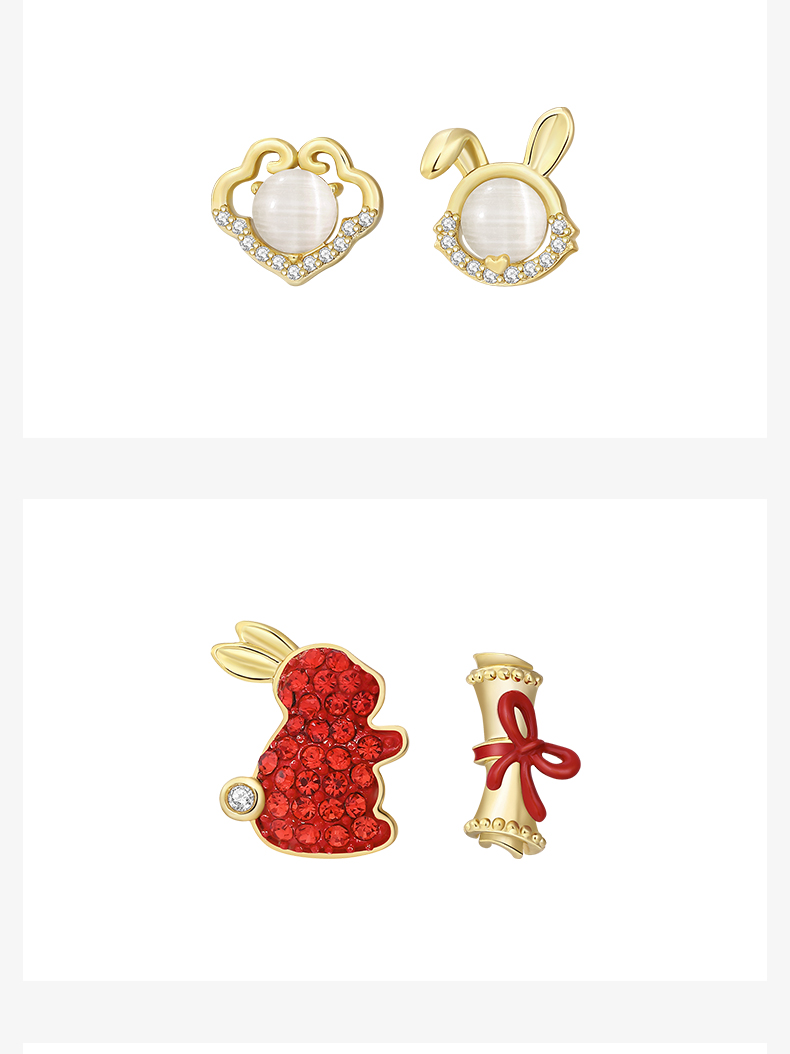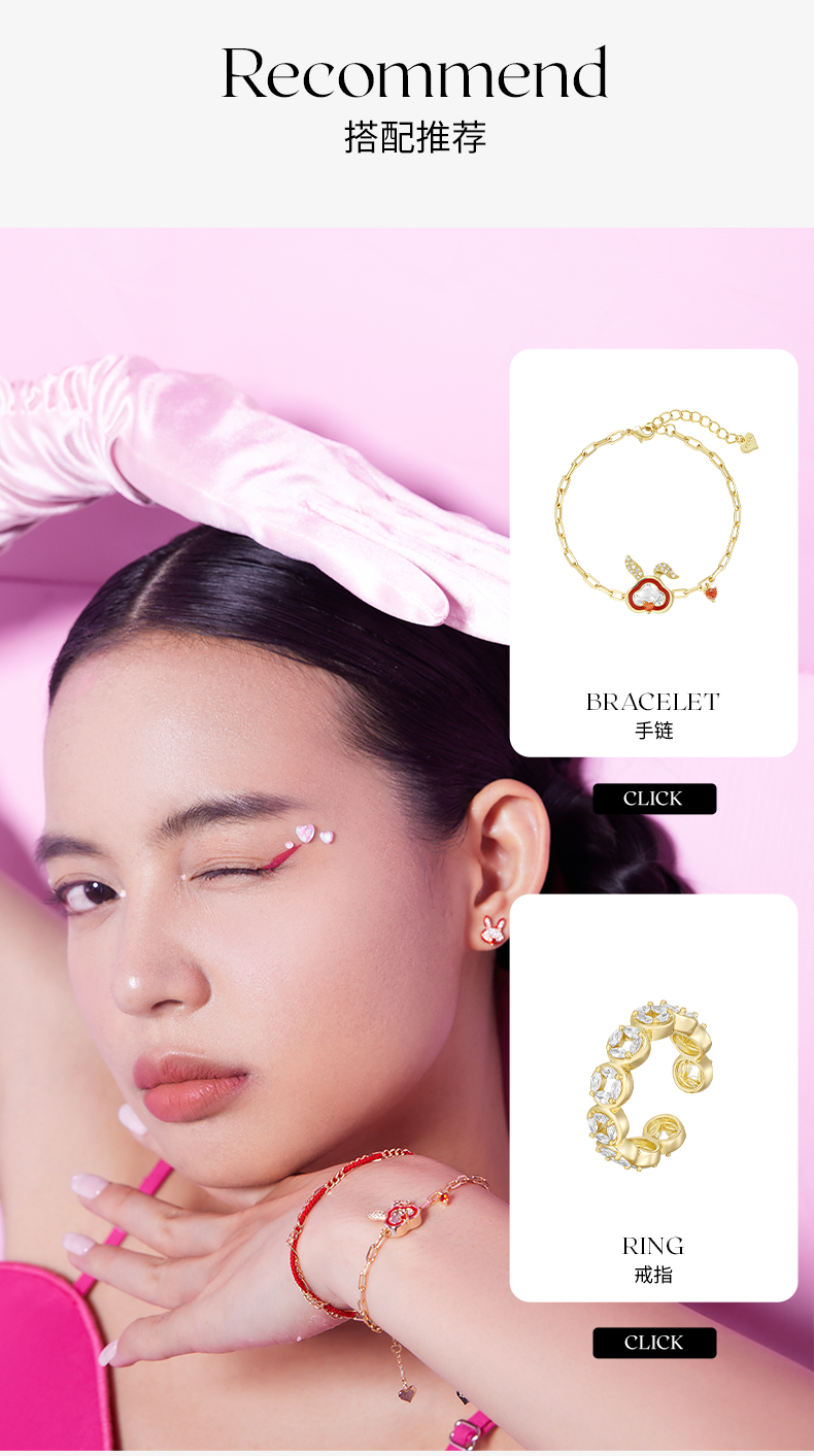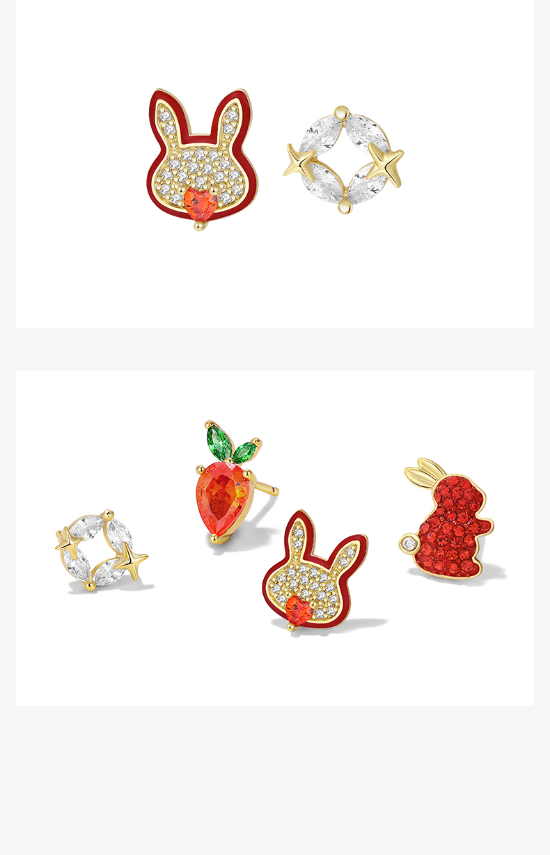 ZEGL设计师本命年系列桃花兔子925纯银耳钉女红色耳环秋冬耳饰品