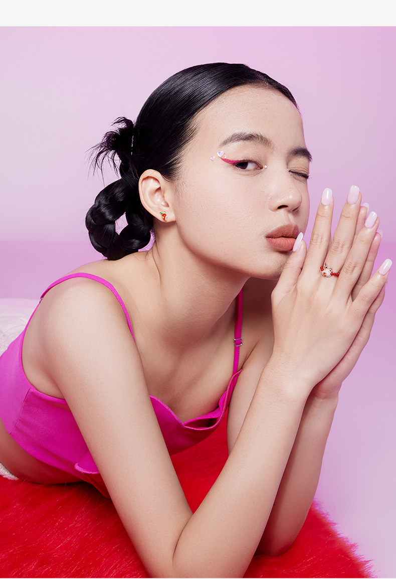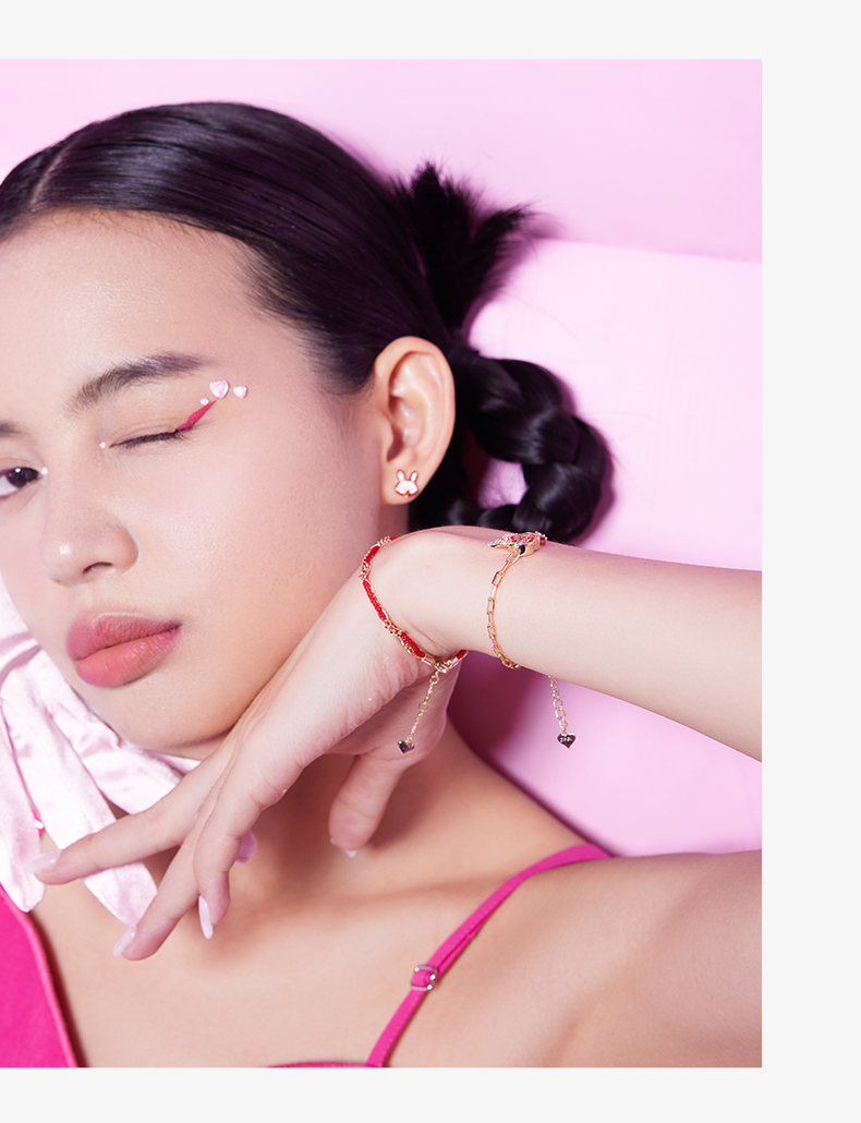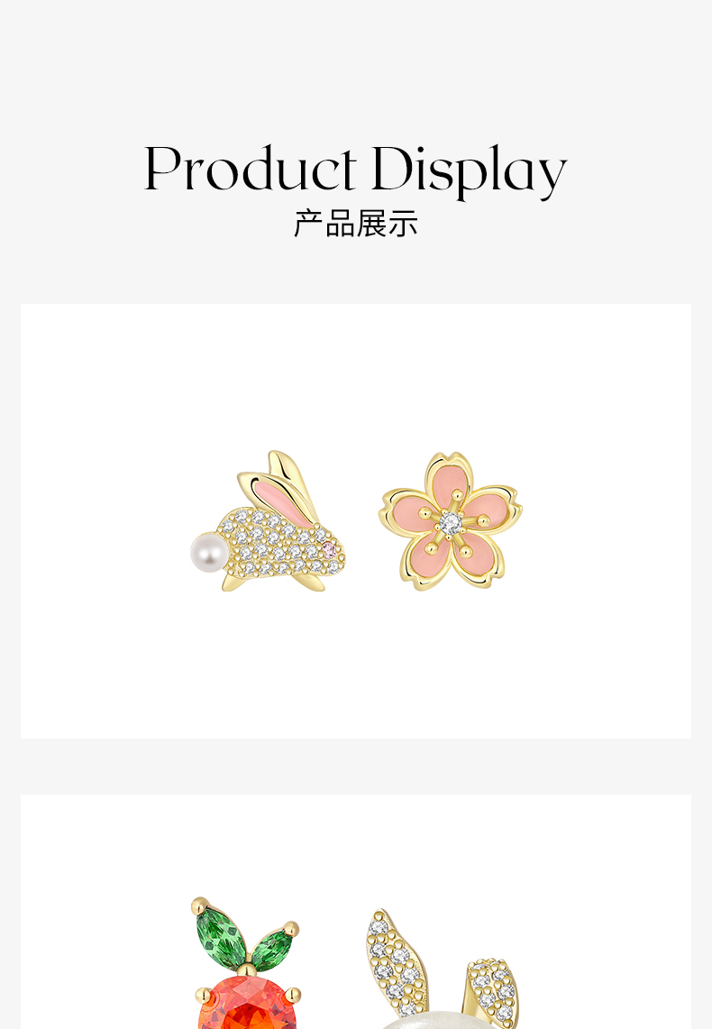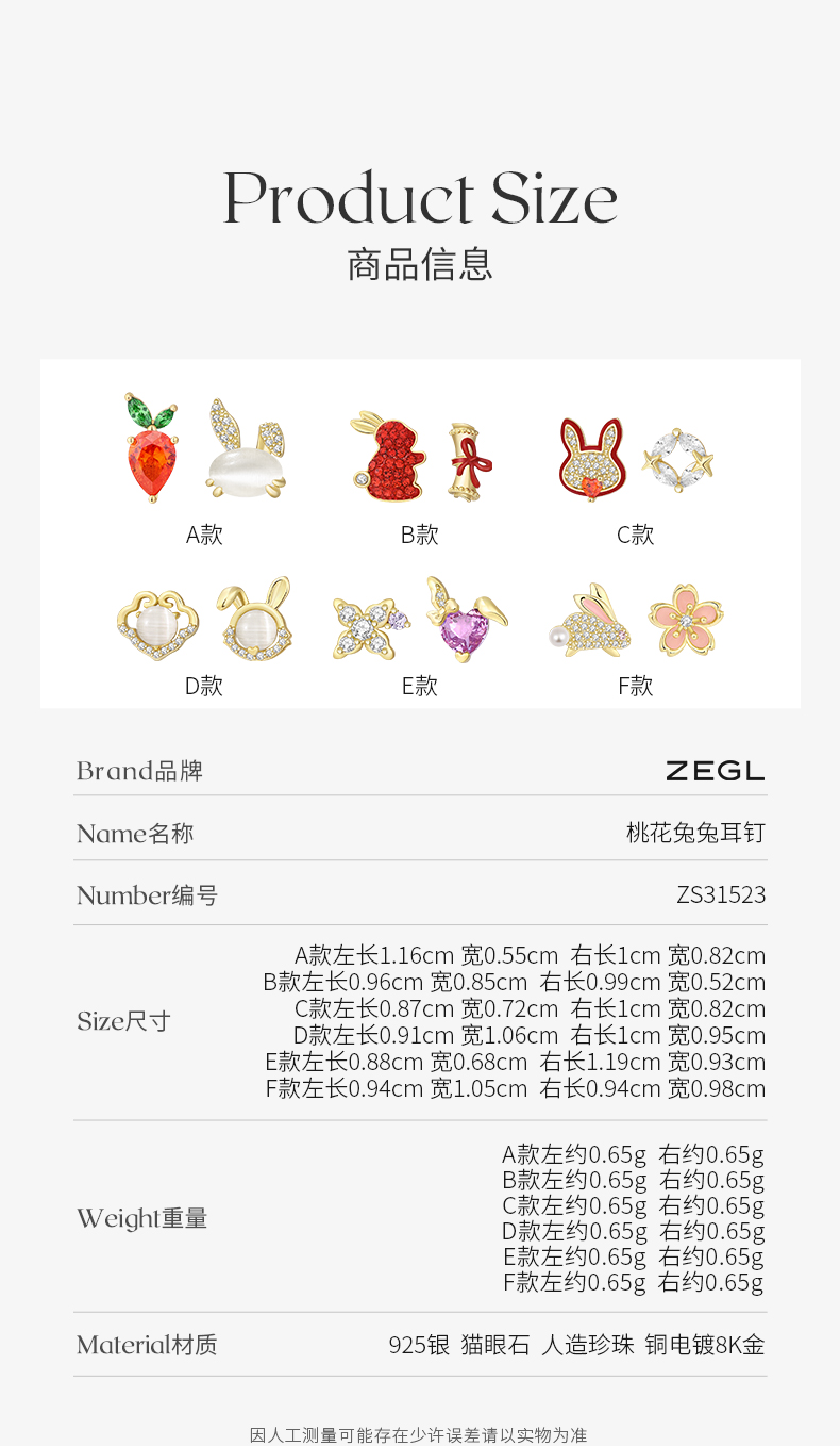 ZEGL设计师本命年系列桃花兔子925纯银耳钉女红色耳环秋冬耳饰品