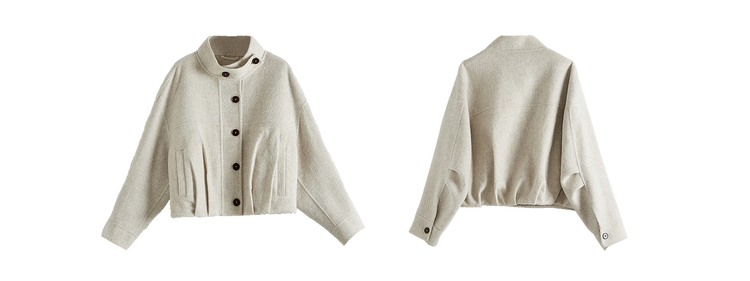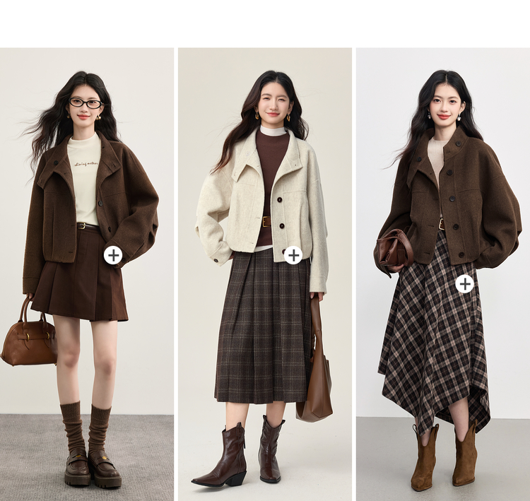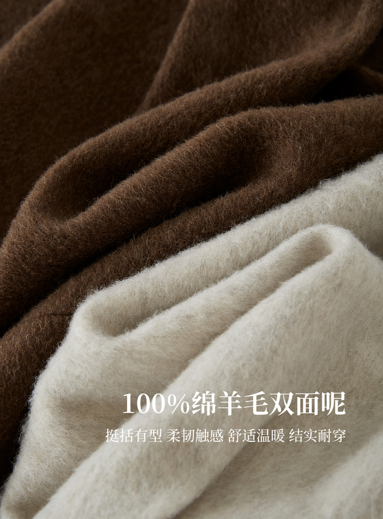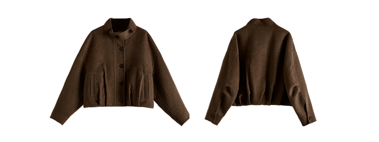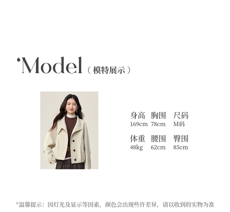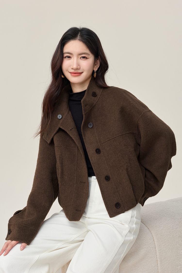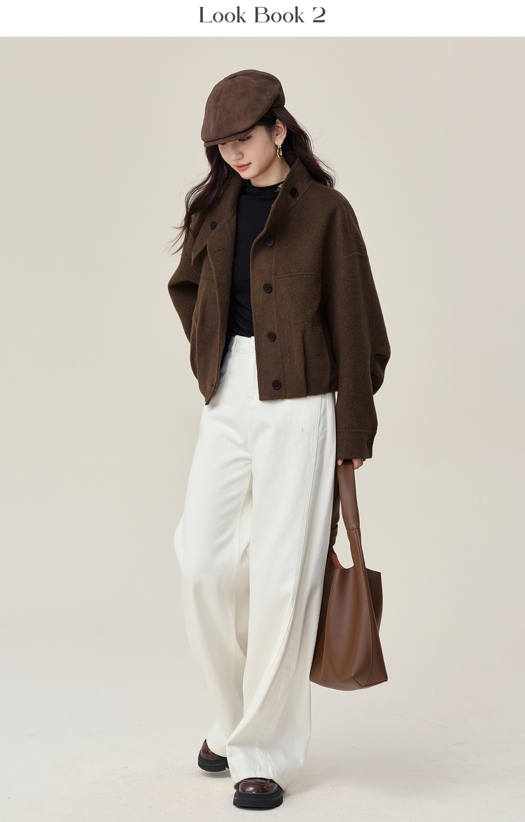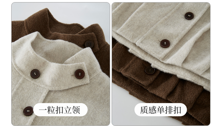 【10/23新品】熙世界巴恩风立领短款毛呢大衣女小个子冬女装休闲宽松纯羊毛外套