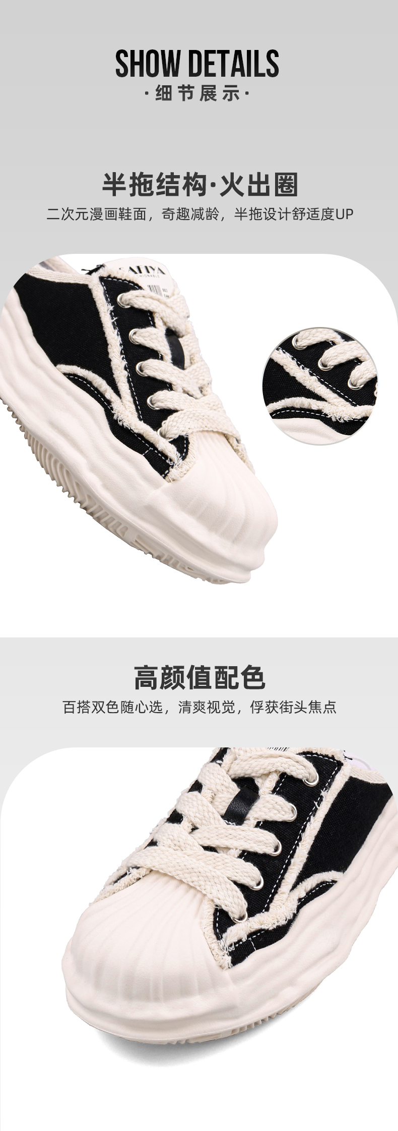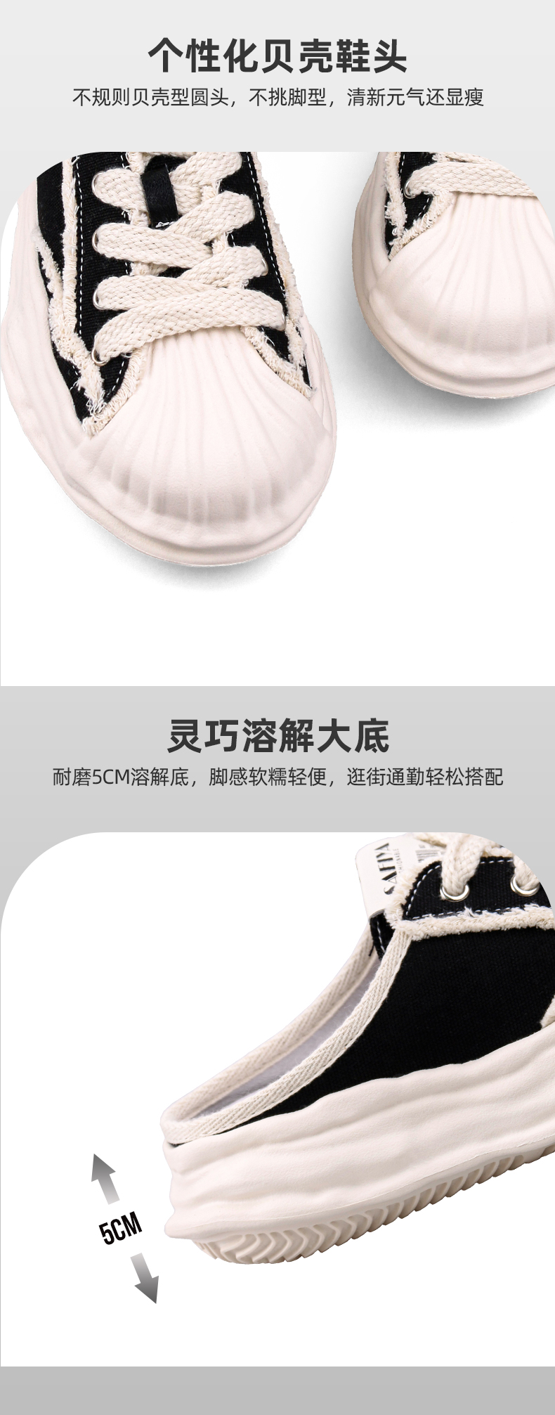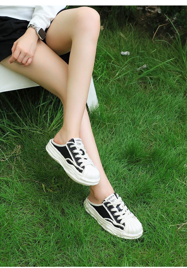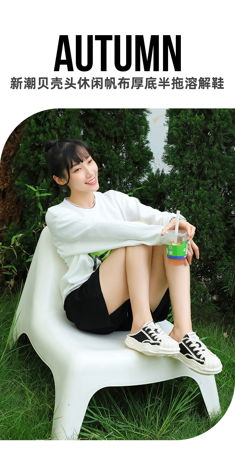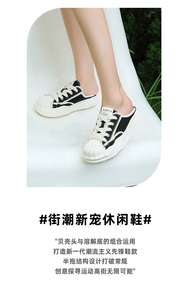 Safiya索菲娅贝壳头溶解底帆布休闲拖鞋2022新款网红风小白拖穆勒拖SF23110401