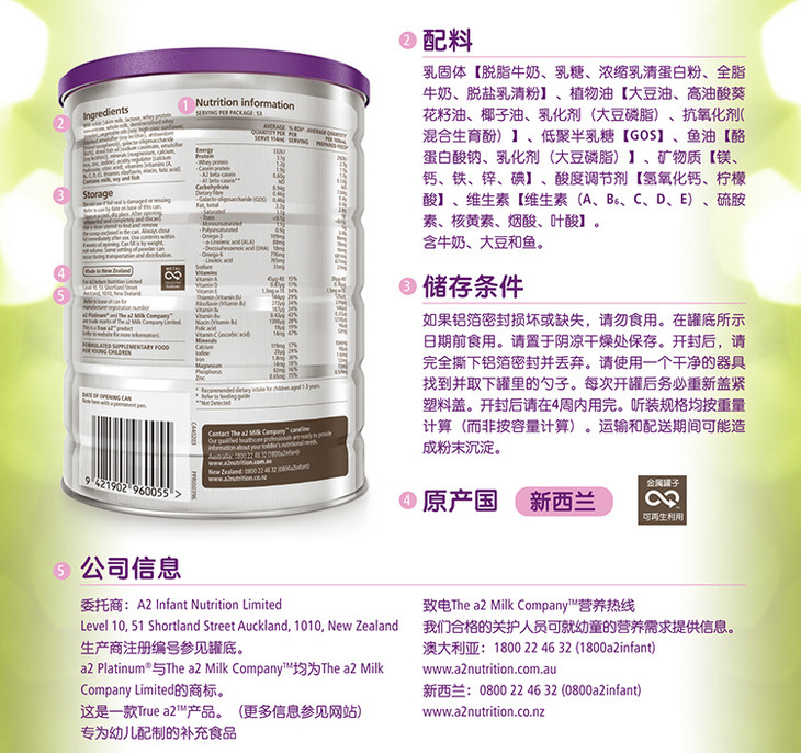澳洲a2 Platinum白金3段奶粉900g一箱6桶